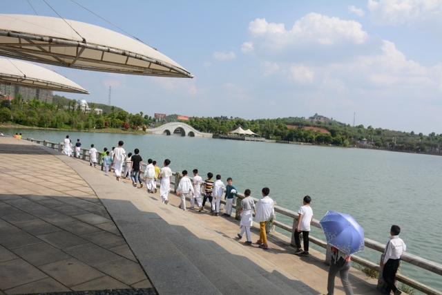 13时左右,班主任带领同学们到达顺湖。微风轻轻吹着,顺湖的空气中弥漫着湖水、森林、青草混合的味道,沁人心脾,孩子们如一群小鸟,欢快得不行。到处是洁白耀眼的正源校服,到处是天真烂漫的笑脸,相信若干年后,这些美丽的影像将是十分甜蜜的回忆。