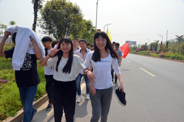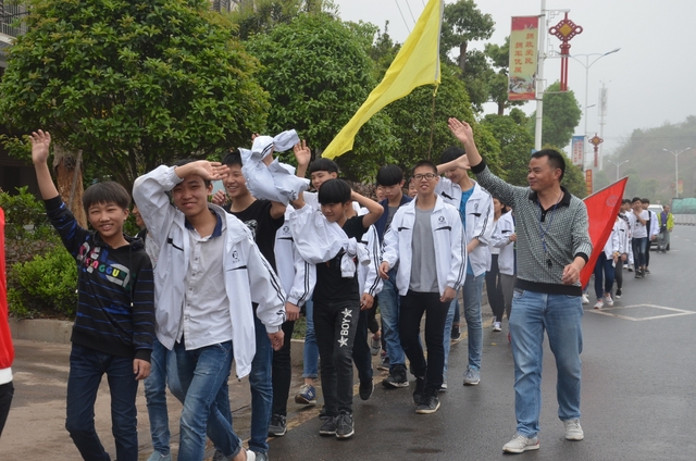 休整一番,在年级统一指挥下,我们踏上了归程。五十多里的长途跋涉,不少同学双脚磨出了血泡,脸颊晒得绯红,但从他们疲惫而满足的微笑中看出,今天是满载而归。