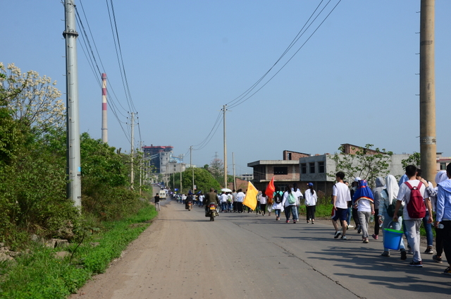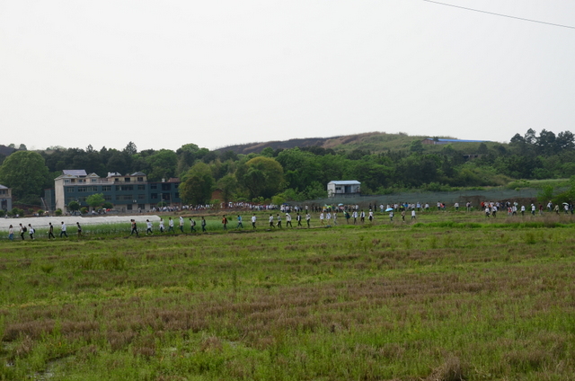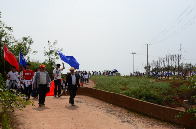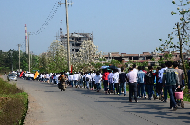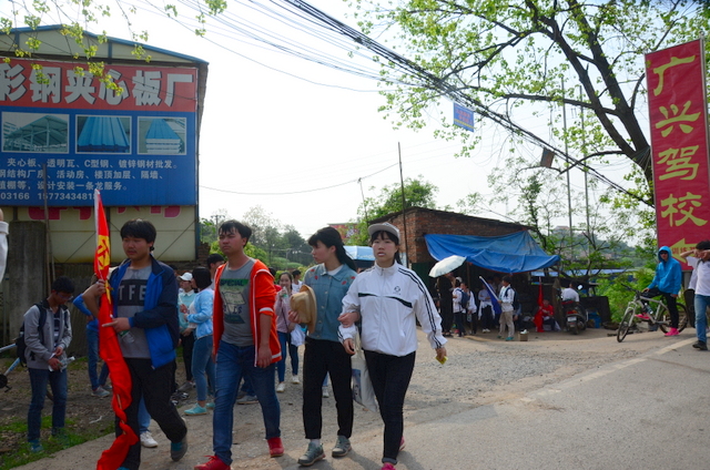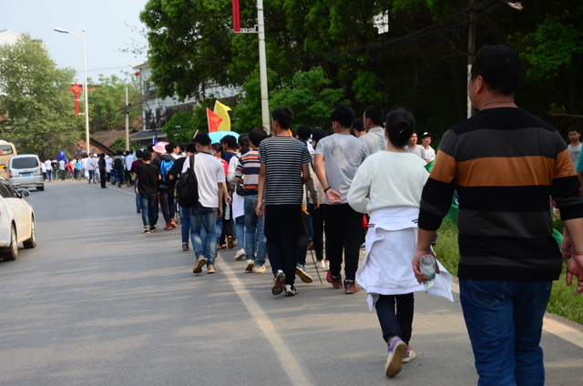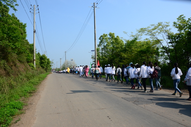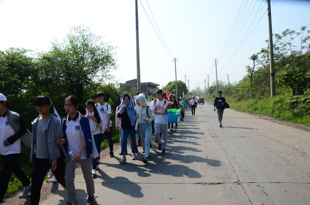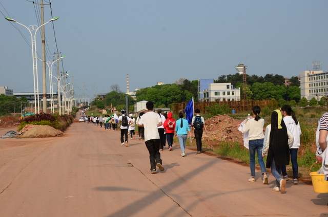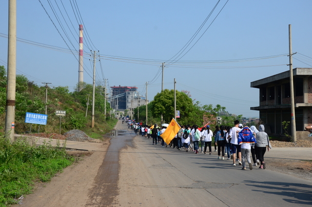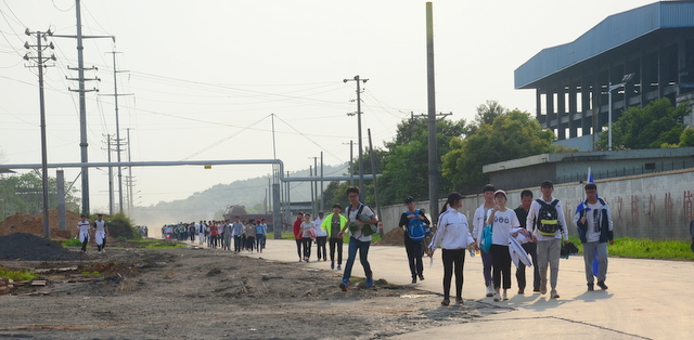 离开盘古庙的时候,接近四点,这才是完全意义的返还。尽管疲惫,但这条长路并没有迫使我们放弃。因为坚持团体一起,走在前方的同学,在一个地方等待大部队。等再次出发时已是走过了大约20公里,也就是全部旅程的大半。但最艰难的挑战还是接下来的路途。正如俗话说:行百里者半九十。长路并没有压倒大家,还在暗暗积蓄力气。在落后的地方,赶紧小跑追上去。大概是抱着要早到学校的决心,一路上同学暗暗竞争,不想落后,不想拖后腿。这种心中不灭的要坚持下去的斗志,给了让我们继续行走下去的力量。