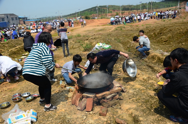 我们野炊的地方不在盘古庙,而是一块空旷的黄土地。一侧毗邻公路,一侧环抱群山,只是零星几户人家,还有一栋正在修建的楼房。