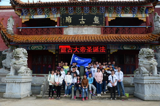 从外面看,盘古庙只是两层楼。古朴的砖瓦,远传的香烟,都吸引着我们走进它。里面才是最宽阔宏伟的地方,且十分凉爽,也正好避一避外面的阳光。环顾四周,有人说墙上是女娲,旁边的仙人是运气神。可见,我们的世界不会只是公式算数,也有神话梦幻。这样的年龄,不会只是积极进取的拼搏,还有拥抱梦幻的质朴。