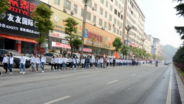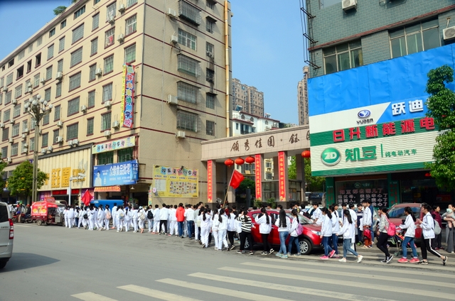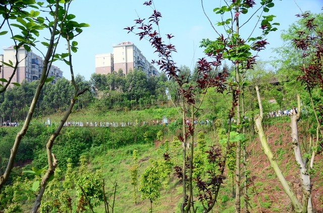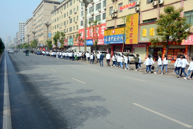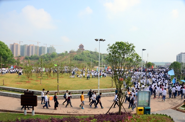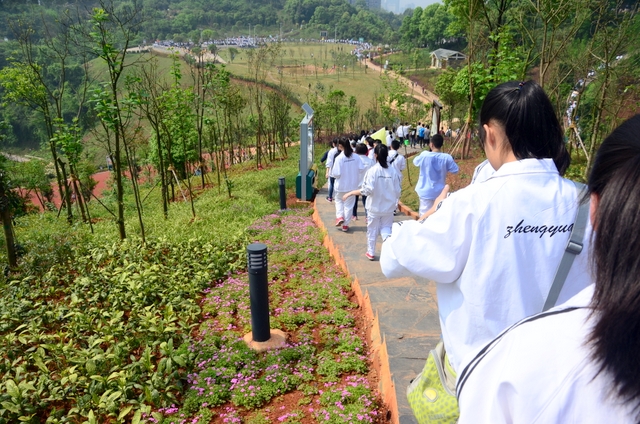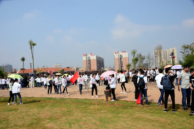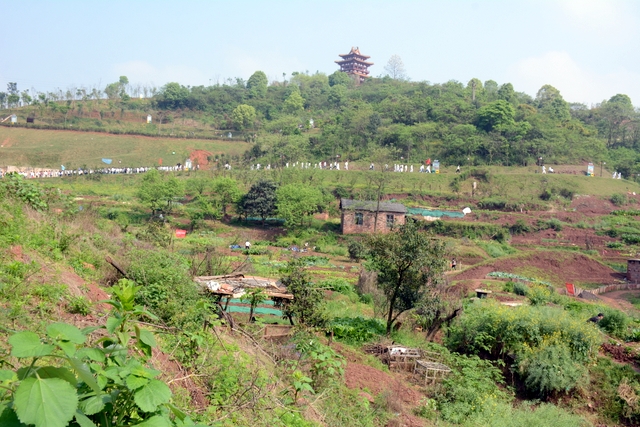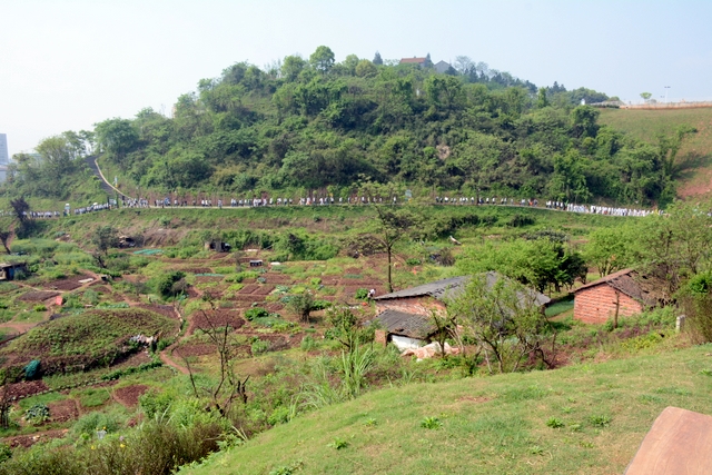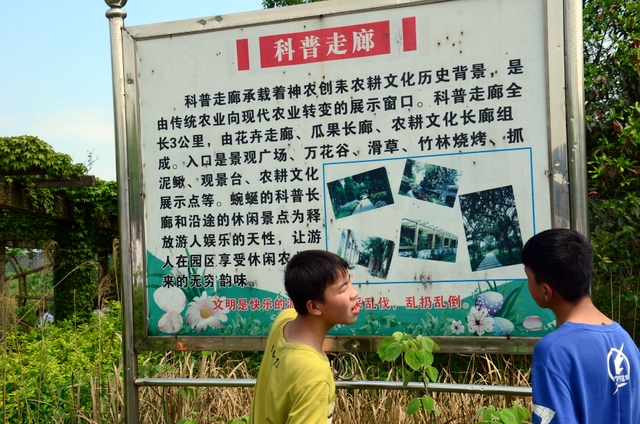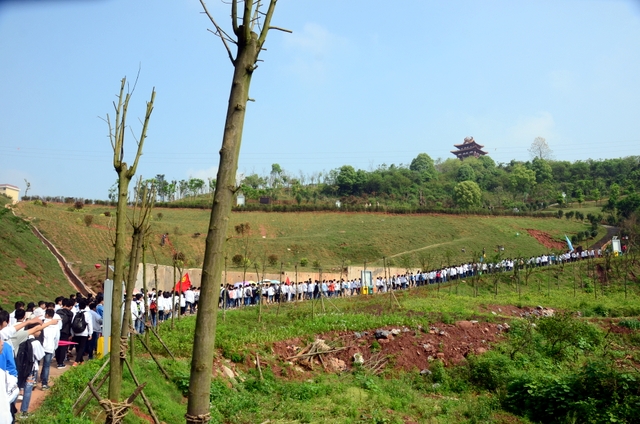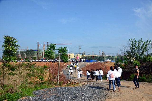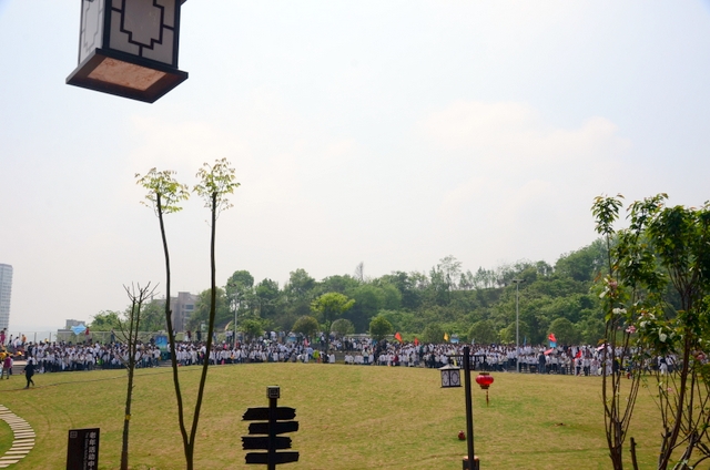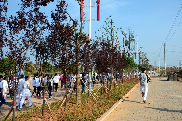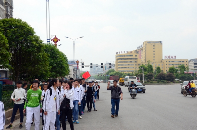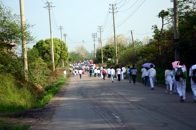 大约10点半,我们迈开大步,举着红旗,向距中心城区十多公里、位于大金村的蔡伦现代农业科技园进发。