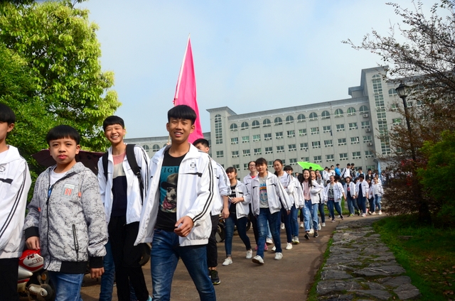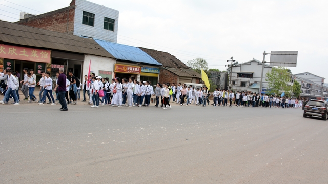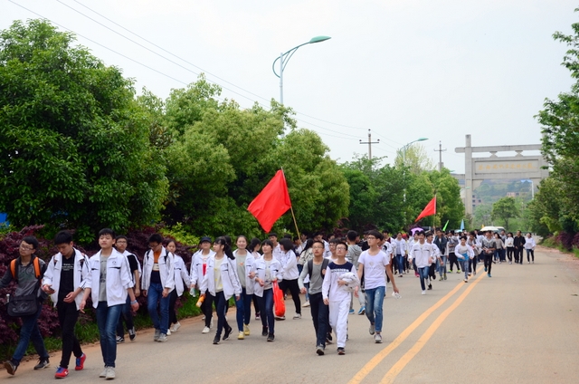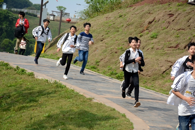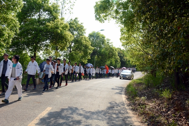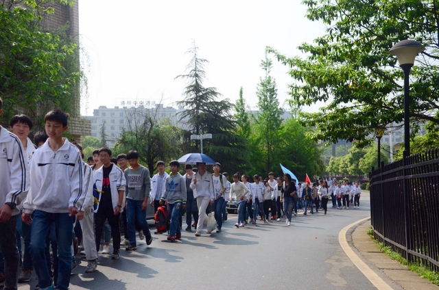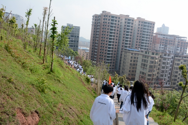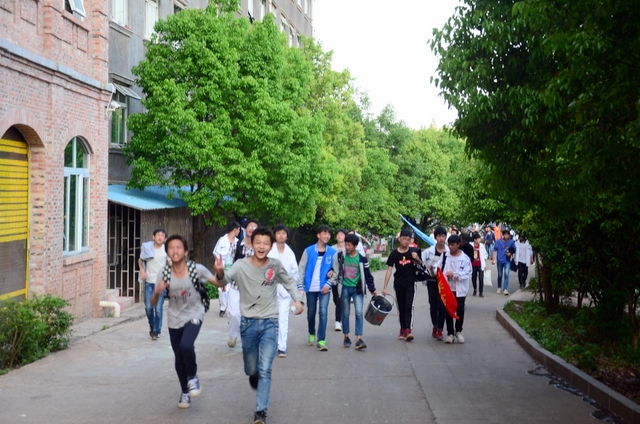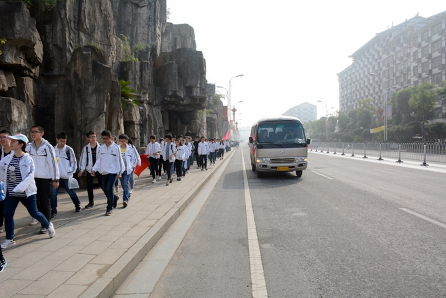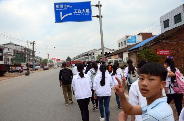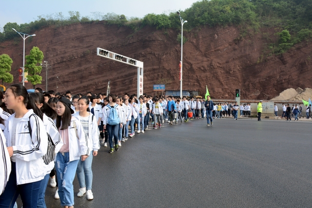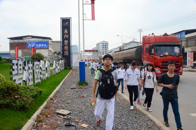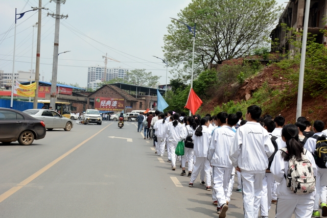 经过一天的奔波,同学们已经筋疲力尽了。在老师的鼓励下,同学们即使是互相搀扶也没有丝毫退缩的念头。5点时分,先头的同学已经到达学校,阳光下,同学们的背影熠熠生辉。