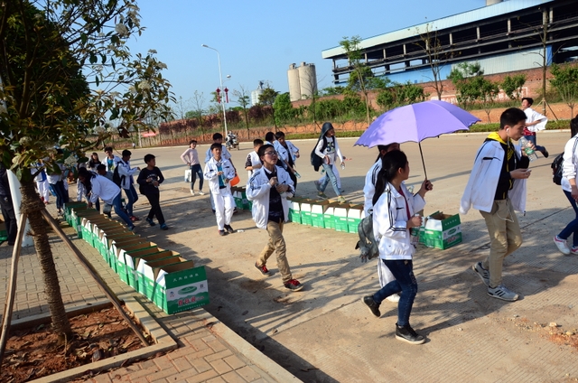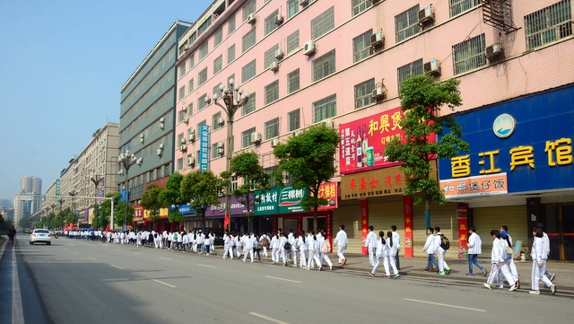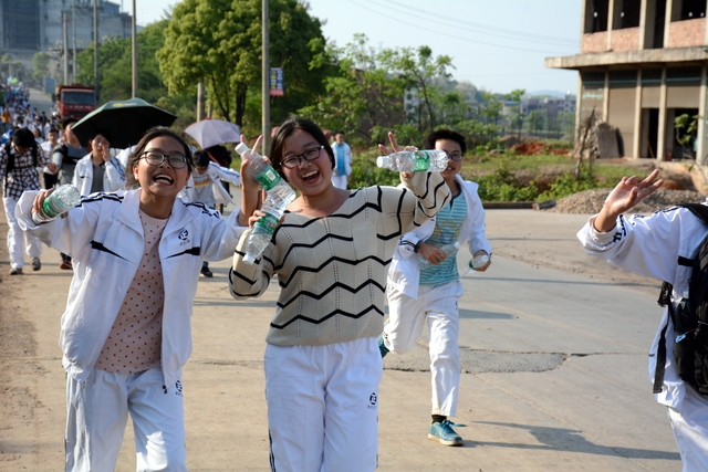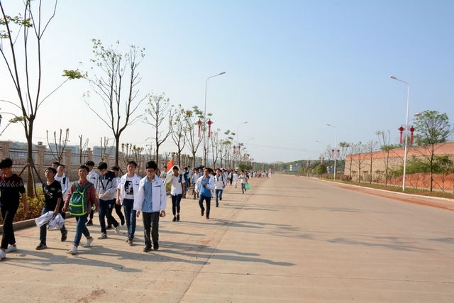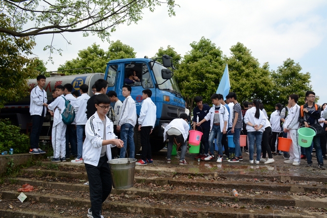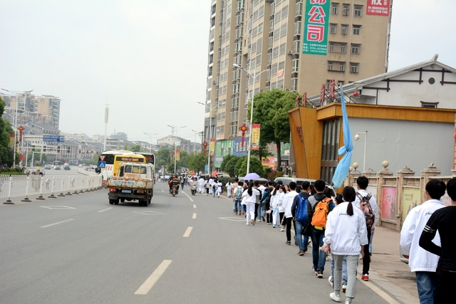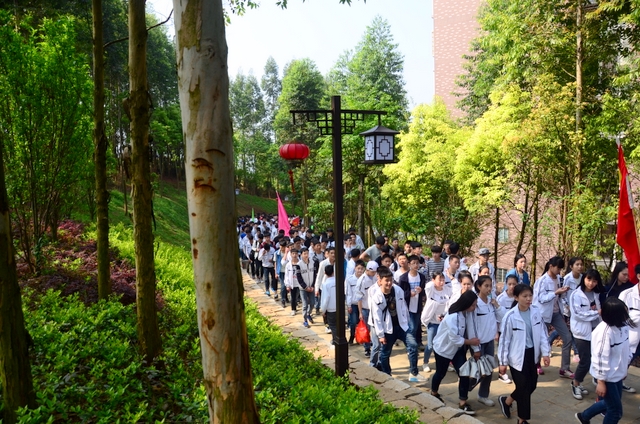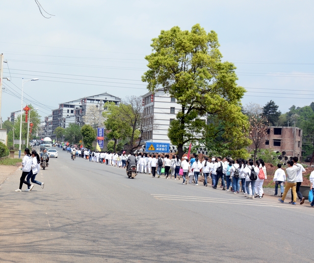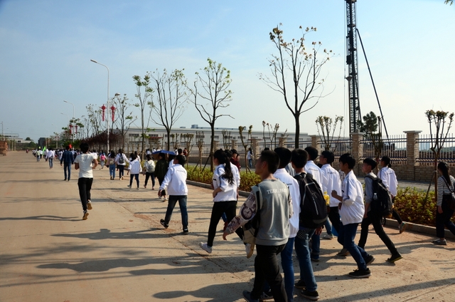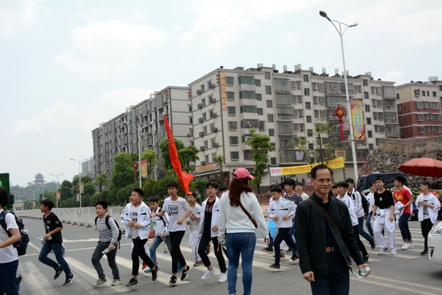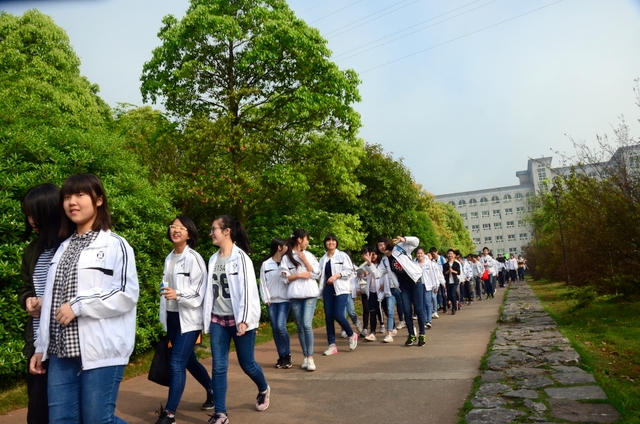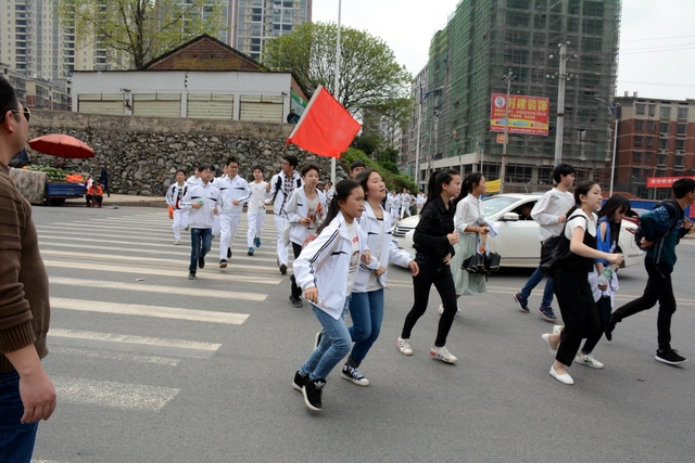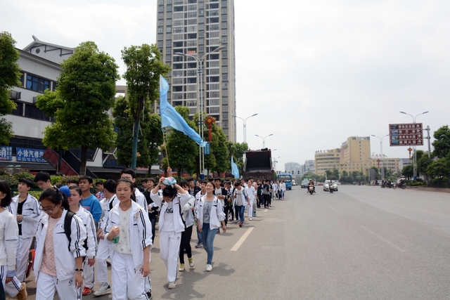 经过一天的奔波,同学们已经筋疲力尽了。在老师的鼓励下,同学们即使是互相搀扶也没有丝毫退缩的念头。5点时分,先头的同学已经到达学校,阳光下,同学们的背影熠熠生辉。