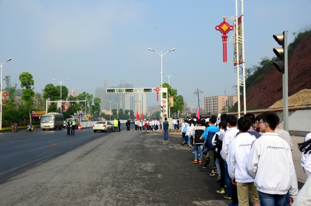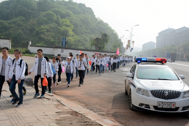 我们的队伍沿着107国道向北前进,一路上交警叔叔为我们保驾护航,每一个路口,都有他们屹立的身躯,他们身着帅气的警服,挥舞着双臂指挥车辆,开辟出安全通道。豆大的汗珠滑过他们的脸颊,也滑进我们的心里,这一天,他们最美!