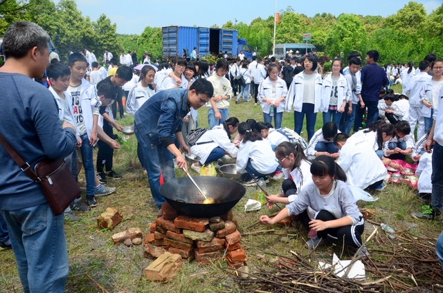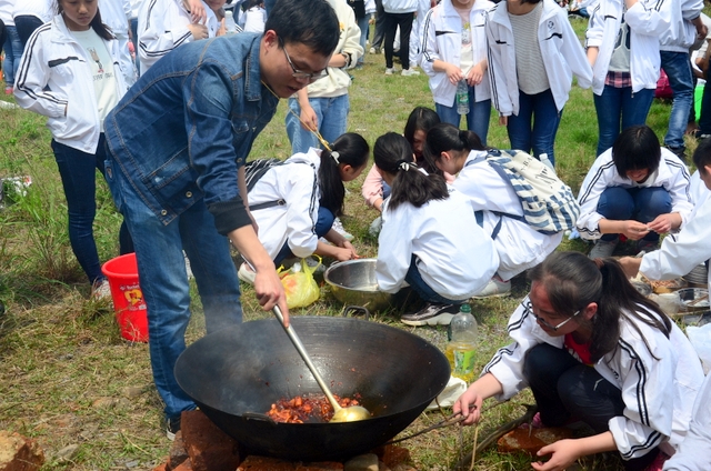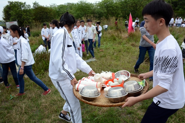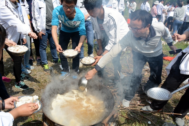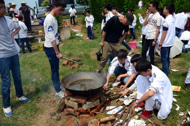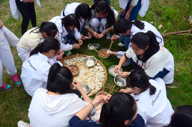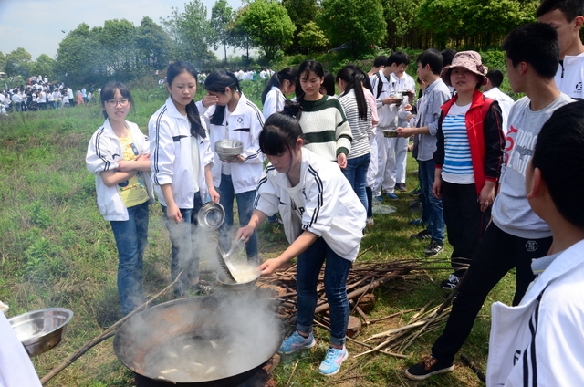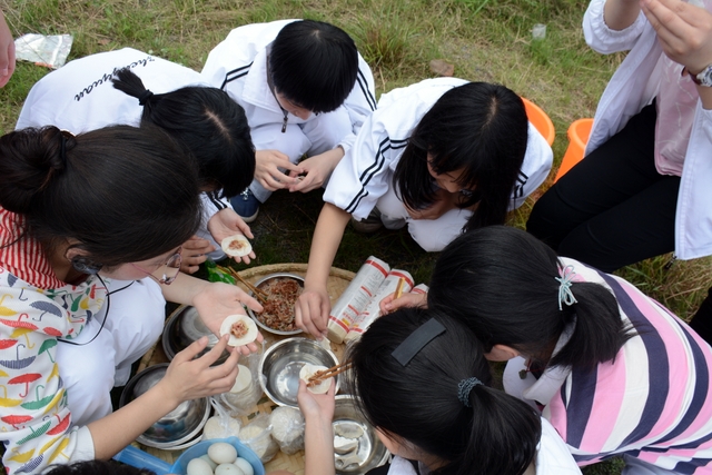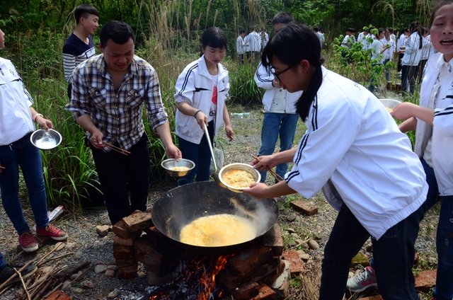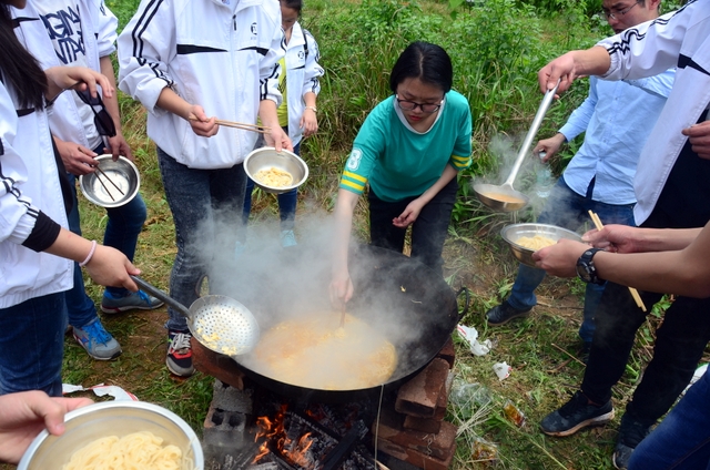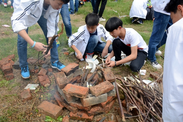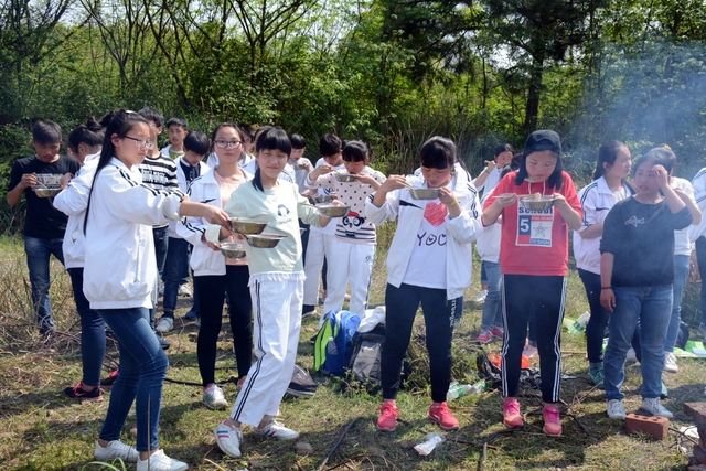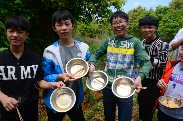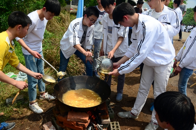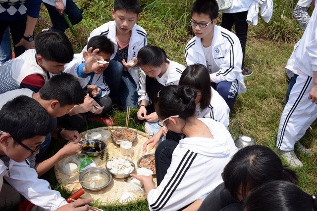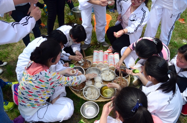 漫长的跋涉后,同学们抵达了野炊地点。说干就干,同学们撸起袖子就来:同学们各司其职,食材组排队领食材和炊具,柴火组就近拾捡柴火,男生们打水、垒灶、生火,女生们则洗碗刷锅。很快,大家围成一圈,开始包饺子。我们都是“老游客”,很多同学娴熟地包出一个又一个可爱的饺子,也有些同学左看看,右问问,笨拙地学习,即使不会也仍不放弃表现一番。大家其乐融融地忙活着,好似有使不完的劲。一切都准备就绪后,食材组掌勺下面条和饺子,也有老师亲自下厨。面对着炎热、火焰、浓烟,我们没有半句怨言,都围着锅,纷纷递食材佐料,生怕自己帮不上忙。终于,面条出锅了!同学们都乐呵呵地捧着手里的碗,大口大口地吃着。“虽然过程是艰难漫长的,但在大家的合作下,什么困难都显得微不足道。”1601班刘志华同学感慨道,“我深深体会到了父母日复一日为我们做这些家庭琐事的辛劳……”
