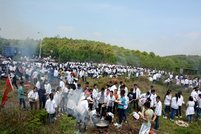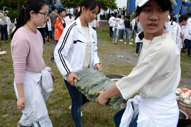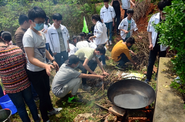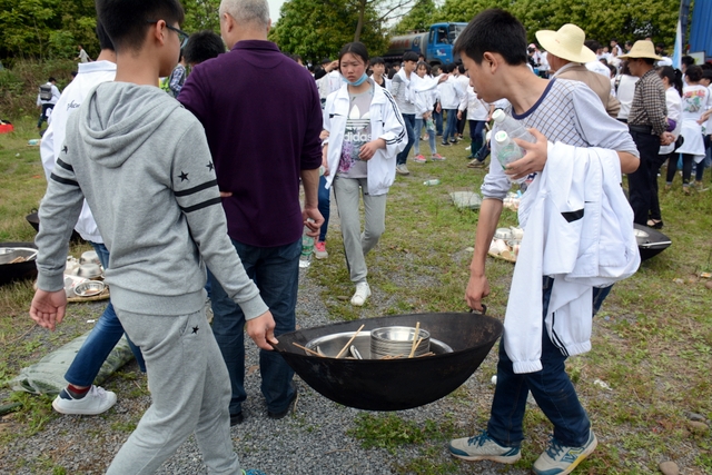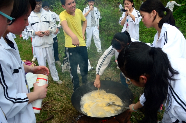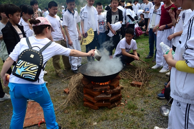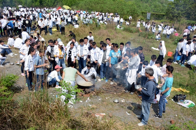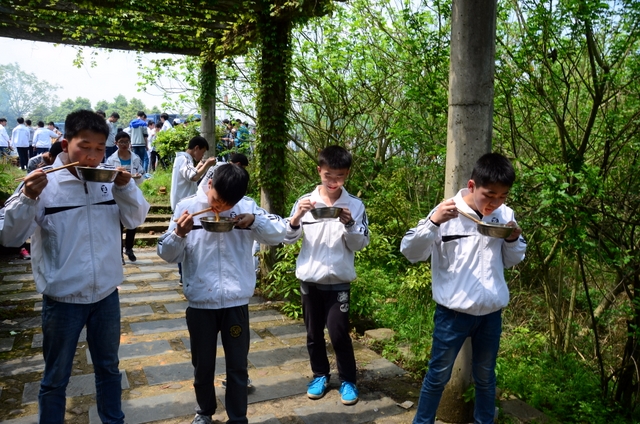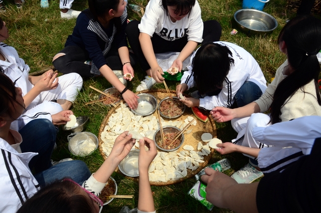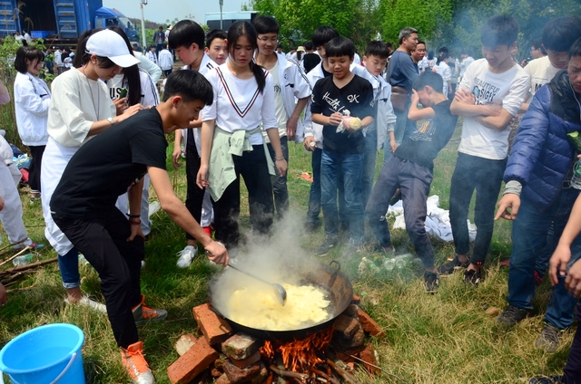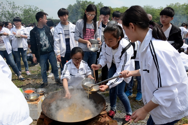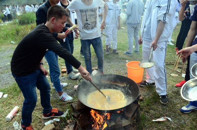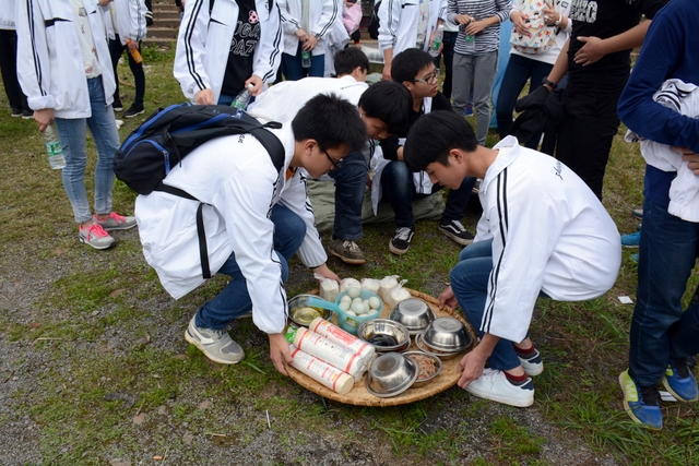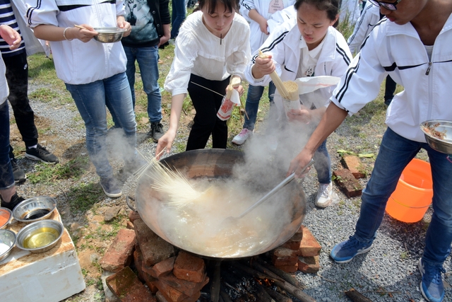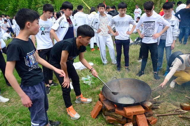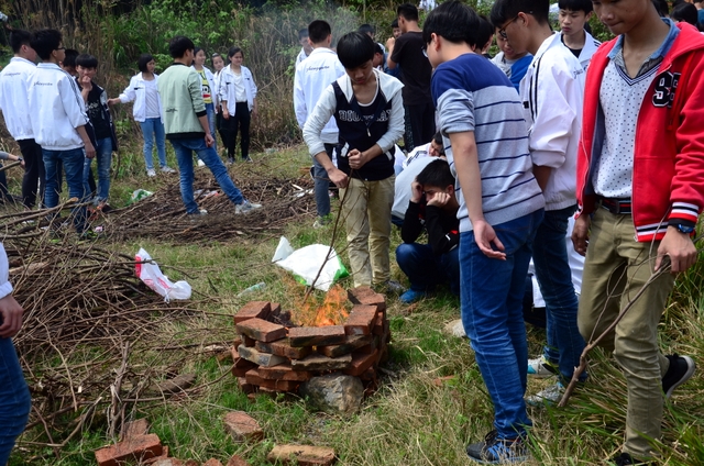 漫长的跋涉后,同学们抵达了野炊地点。说干就干,同学们撸起袖子就来:同学们各司其职,食材组排队领食材和炊具,柴火组就近拾捡柴火,男生们打水、垒灶、生火,女生们则洗碗刷锅。很快,大家围成一圈,开始包饺子。我们都是“老游客”,很多同学娴熟地包出一个又一个可爱的饺子,也有些同学左看看,右问问,笨拙地学习,即使不会也仍不放弃表现一番。大家其乐融融地忙活着,好似有使不完的劲。一切都准备就绪后,食材组掌勺下面条和饺子,也有老师亲自下厨。面对着炎热、火焰、浓烟,我们没有半句怨言,都围着锅,纷纷递食材佐料,生怕自己帮不上忙。终于,面条出锅了!同学们都乐呵呵地捧着手里的碗,大口大口地吃着。“虽然过程是艰难漫长的,但在大家的合作下,什么困难都显得微不足道。”1601班刘志华同学感慨道,“我深深体会到了父母日复一日为我们做这些家庭琐事的辛劳……”