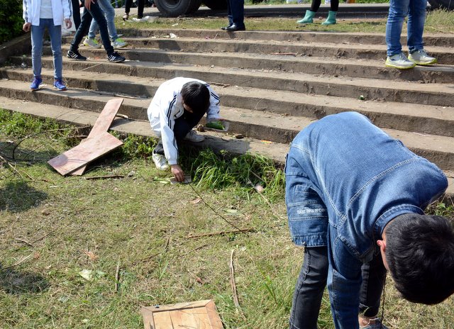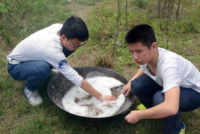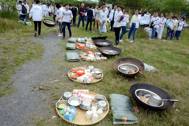 吃完中餐,卫生组的同学认真地将野炊地点打扫干净,其他同学也主动帮忙刷碗,归还炊具。待所有事情准备完毕后,同学们背上行囊,踏上了归途。