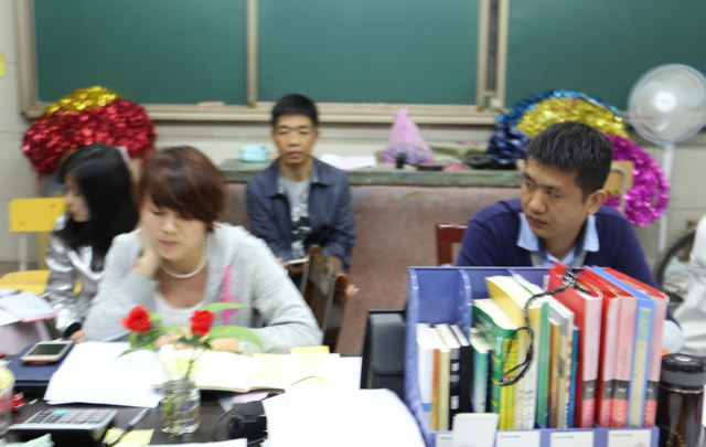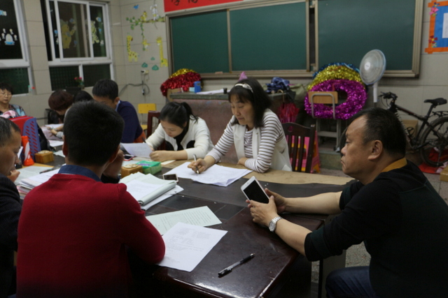 校长助理蒋智敏(右一)、小学部语文教研主任贺江云(前排左一)、数学教研主任周运根(后排中)