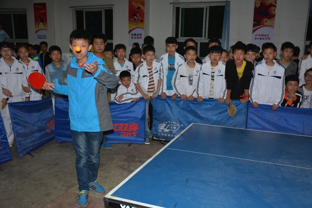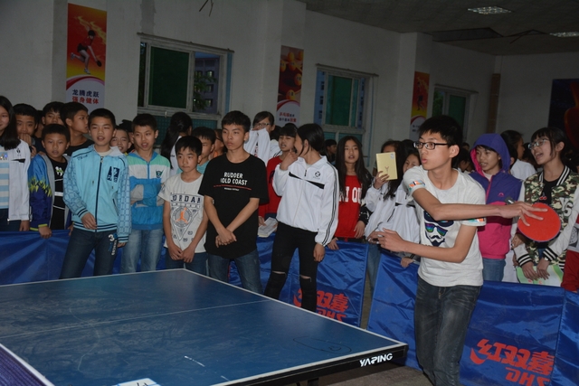 4月17日傍晚,初一年级乒乓球赛进场较量的是初295班和初278班进行团体淘汰赛的选手们。