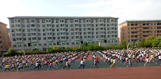 雨止风息,晴空万里,4月19日,正源学校小学部三年级全体师生们齐聚小学生运动场,小结远足顺湖情况,表彰远足先进师生,并进行小学生运动会开幕式表演节目——五步拳集训。