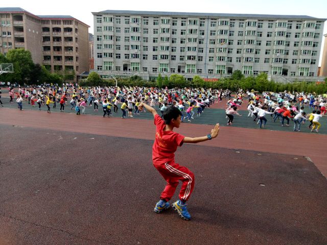 表彰完毕,接着由体育老师谢斌指挥训练五步拳。孩子们那朴实、简约又不失深邃的武术动作将力和美巧妙结合,时而刚劲有力,时而柔美婀娜,令驻足观看的家长及老师笑由心生、赞叹不已。