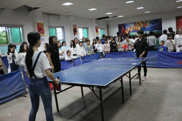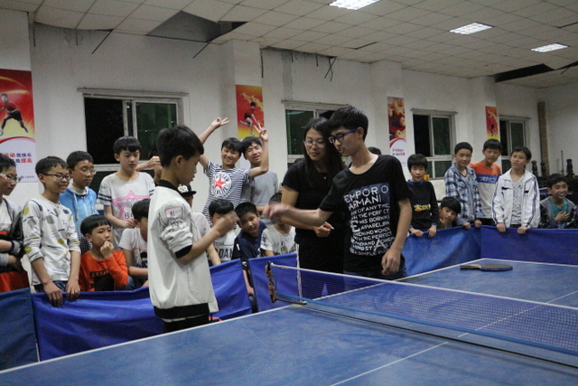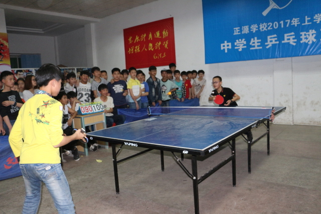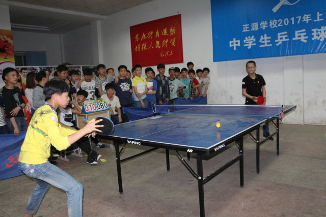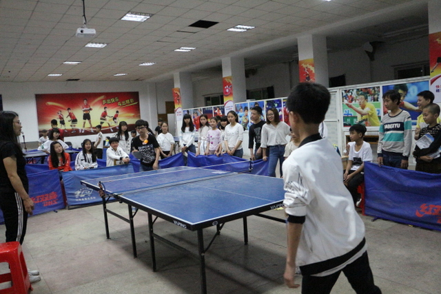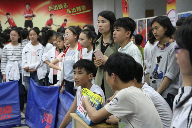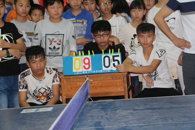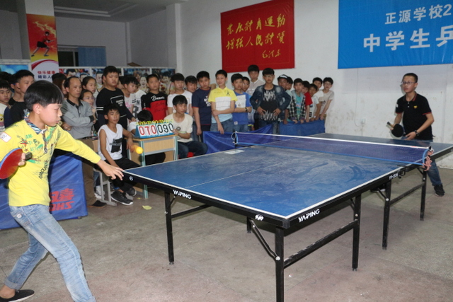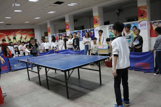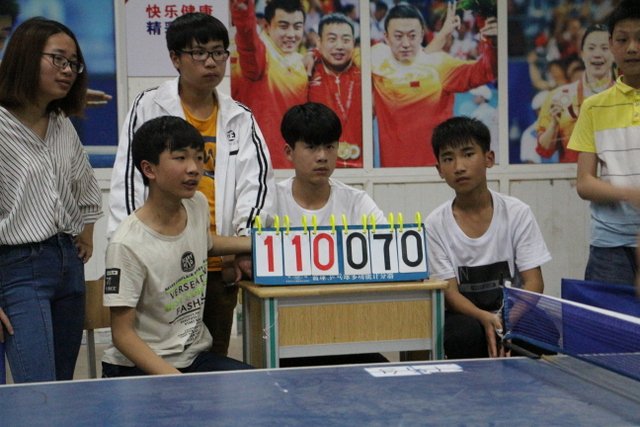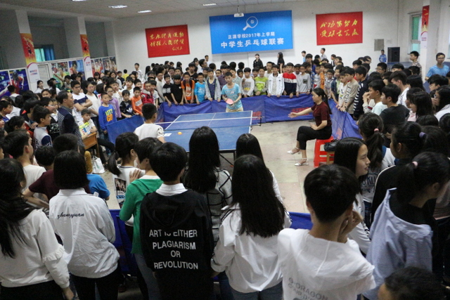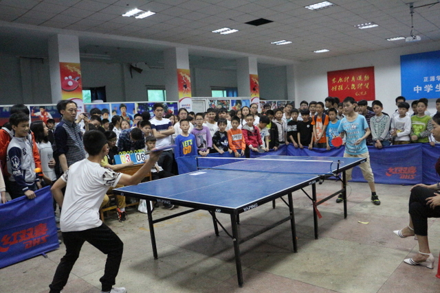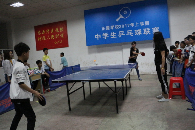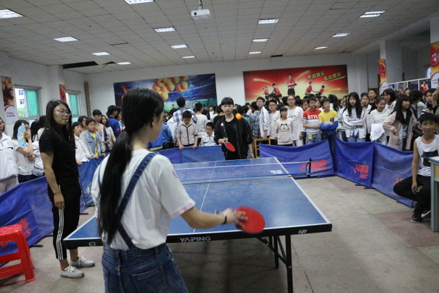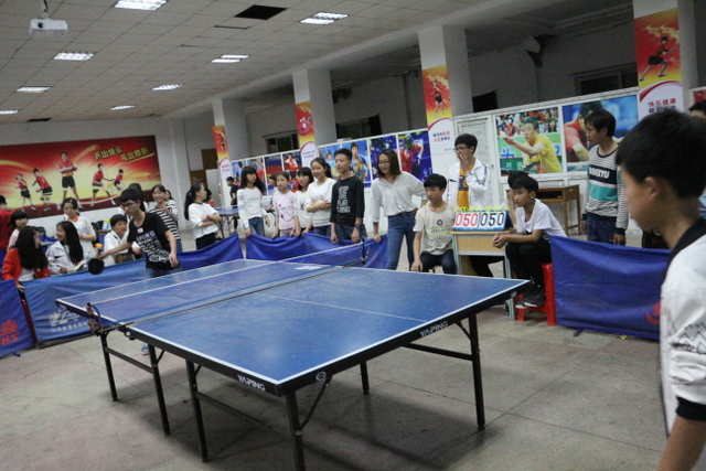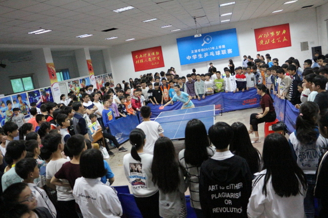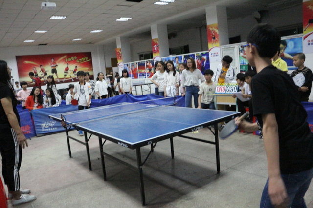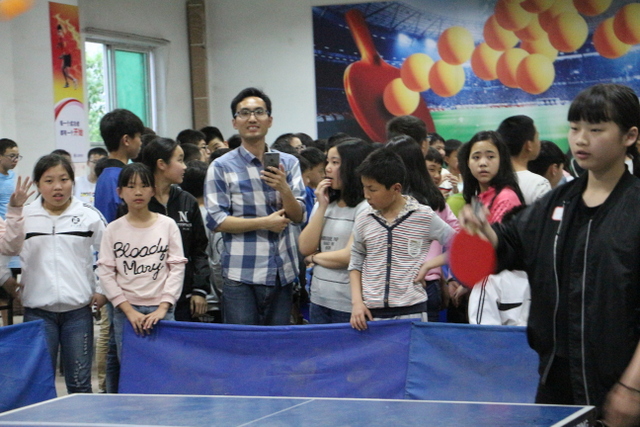 4月19日下午,初一年级乒乓球赛依旧如火如荼地进行中。参与本次比赛的六支队伍,采取三局两胜制,在两个场地同时进行男子单打、女子单打两个项目。