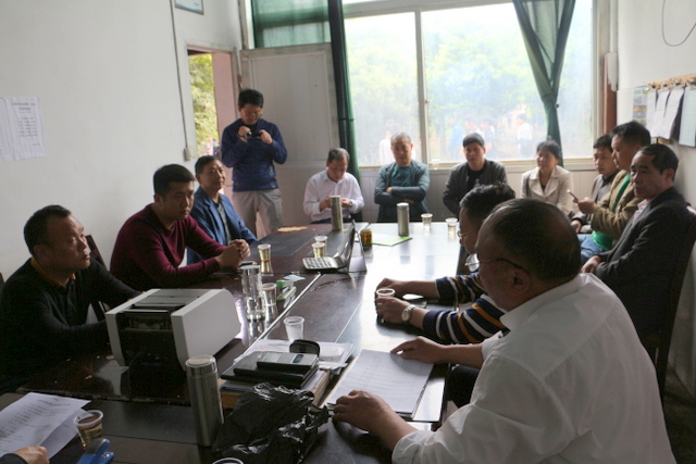 检查之前召开预备会议。左起:陈副校长、蒋助理、食管部主任邓楚云