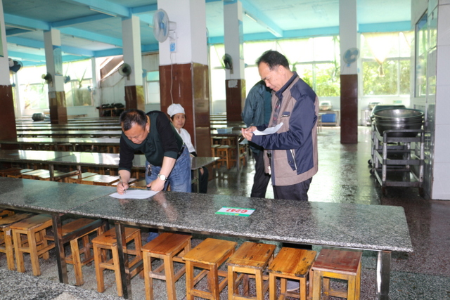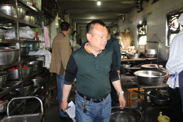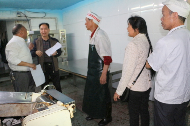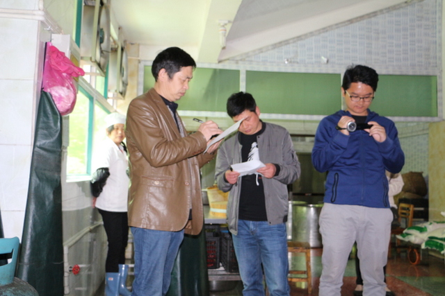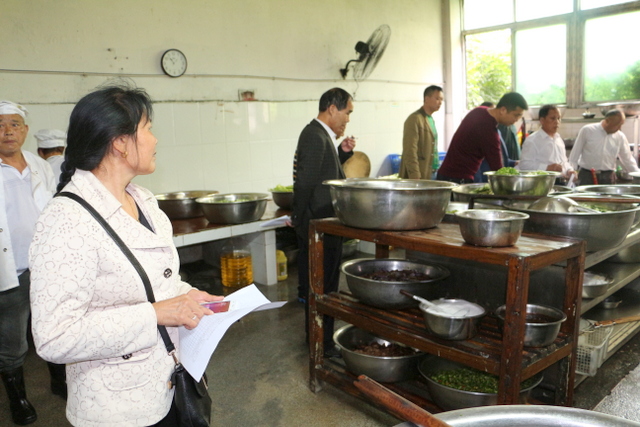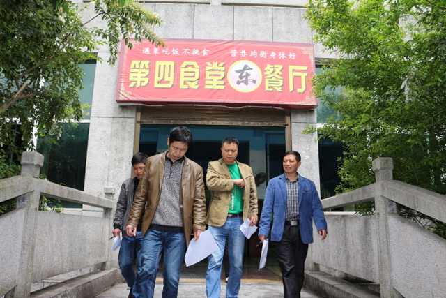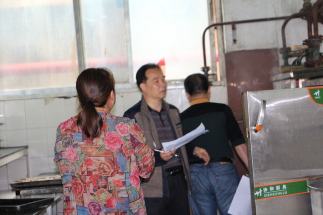 4月18日上午,在陈副校长、蒋助理的带领下,由后勤处、宣传处、食堂管理处负责人及各食堂主任全员参与,对全校食堂及加工部进行了认真细致的检查,并作出了实事求是的评价,综合评分前三名是:第一名二食堂;第二名五食堂;第三名四食堂。