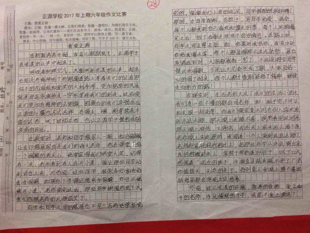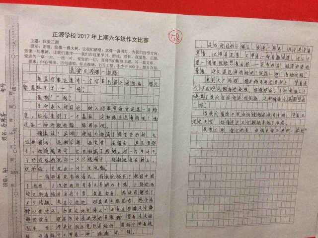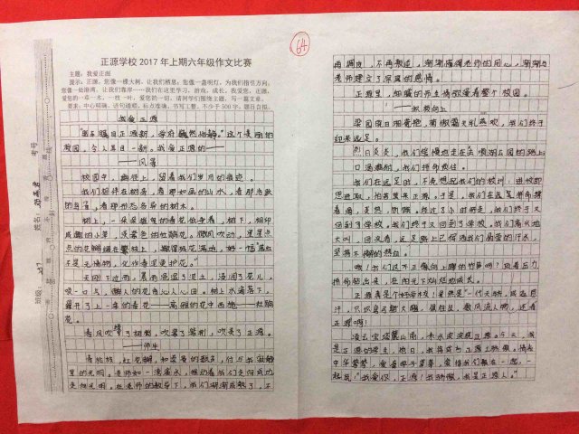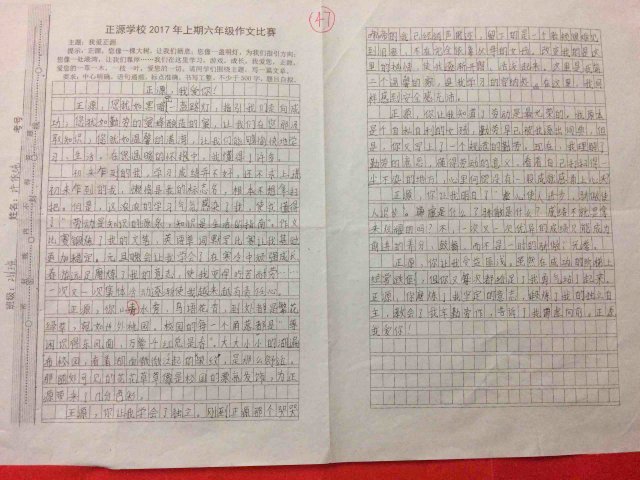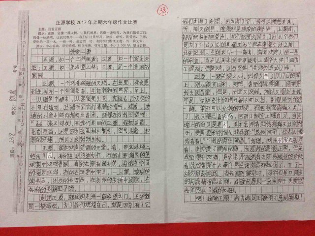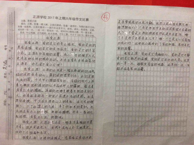 六年级举行“我爱正源”作文竞赛
