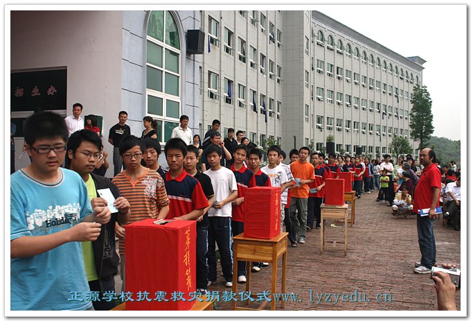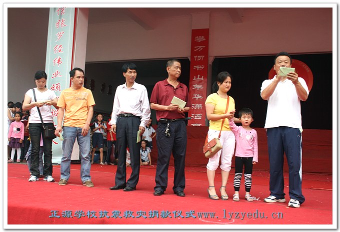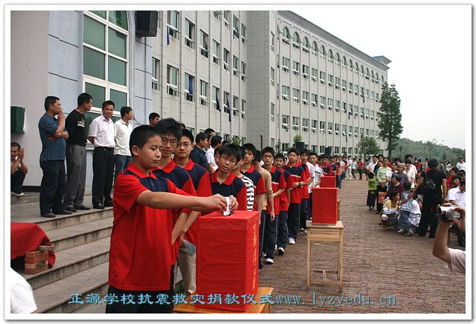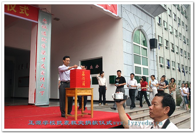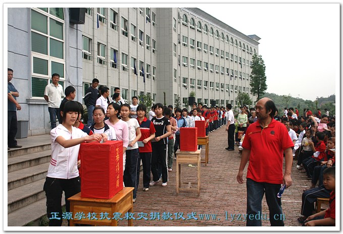 5月31日上午,我校抗震救灾捐款仪式在学校广场举行。5月12日,我国四川省汶川县发生强烈地震。我校非常重视,多次组织学生观看中央台有关抗震救灾专题电视。我校广大师生积极响应学校号召,发扬“一方有难,八方支援”的中国传统美德,踊跃参加这次捐助活动,帮助灾区人民战胜困难,重建家园。抗震救灾,众志成城,越挫越勇,中国必胜,正源和灾区心连心。部分学生家长也纷纷在捐款仪式上捐了款,有的学生家长不愿意上台,就让自已的孩子代捐。学校董事会和罗校长个人分别捐了一万元。据统计,此次共计为灾区捐款21万多元。图为我校师生及部分学生家长积极捐款现场。