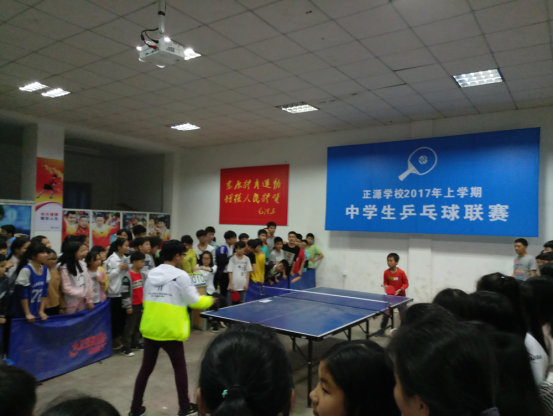 4月20日初一年级各班选手激烈角逐乒乓球赛16强席位