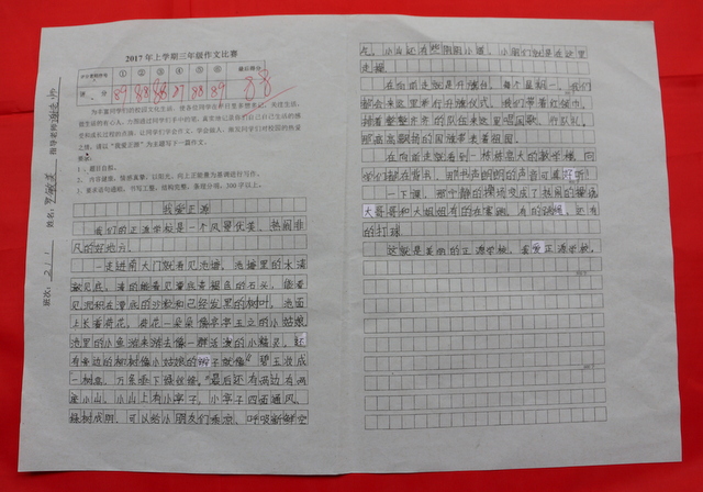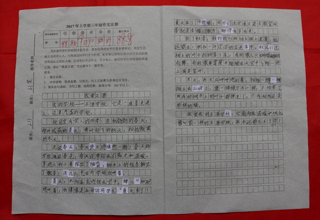 为了培养和提高学生的写作兴趣,营造良好的校园文化氛围,激发学生学习语文的兴趣,根据小学部语文教研组的工作安排,4月22日晚自习期间,小学部三年级举行了以“我爱正源”为主题的作文竞赛。本次大赛,分为初赛和决赛两部分。初赛,全体学生共同参与,决赛由各班语文老师精选出五份作品密封好后交由年级组语文老师共同批改评阅,共有31份作品获奖。其中一等奖6名;二等奖10名;三等奖15名。