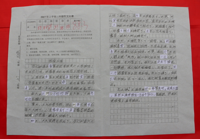 纵观这些获奖作品,都能围绕主题进行描写。内容丰富,书写漂亮。每篇作品都有其独特的视角,流露出小作者对校园的热爱之情,展现出我校小学生丰富多彩的生活。通过这次作文大赛,我们发现,学生的写作水平在老师的重视下正不断提高。