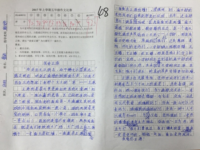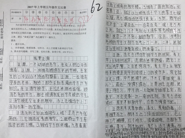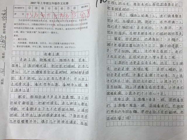 本次“我爱正源”作文竞赛活动,不仅激发了学生的读书和写作热情,同时也教育孩子们要懂得爱校如爱家,要做生活的有心人。