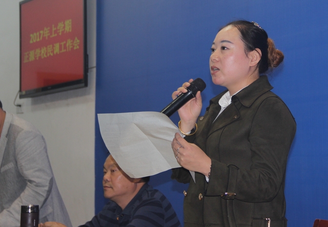 初中部教务主任李佐星就教师自主研修年检工作传达了市教育局有关文件精神,匡烨老师代表学校宣读了《正源学校教师自主研修方案》。