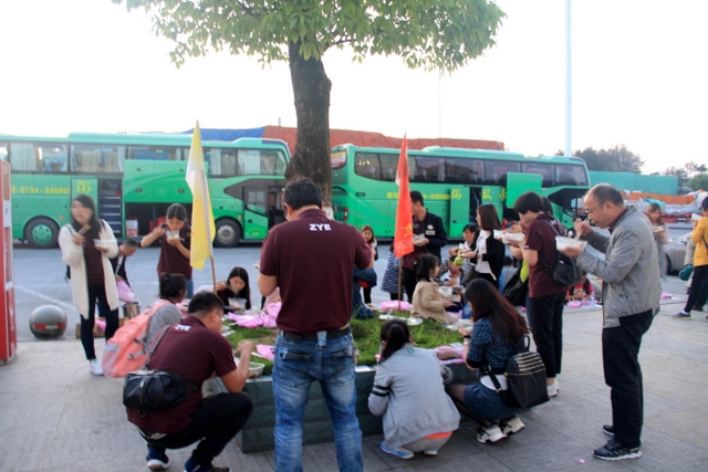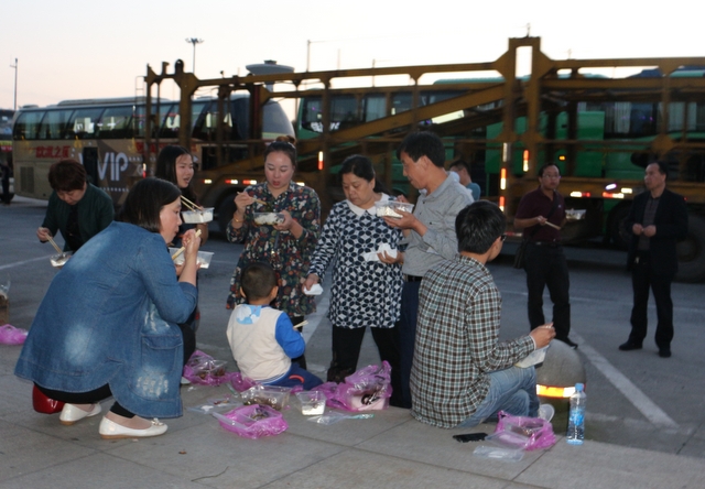 一路经衡阳、湘潭,下午四时许在浏阳服务区集结小憩,然后继续东进。晚七点刚过,在江西修水服务区吃晚餐。学校自备的盒饭,老师们兴趣盎然,吃得津津有味。