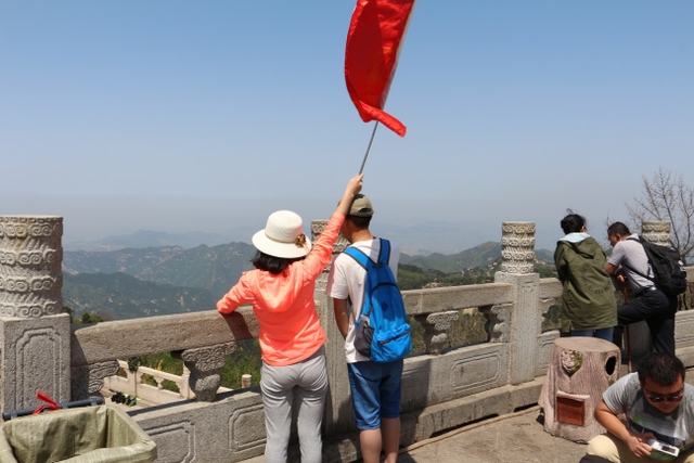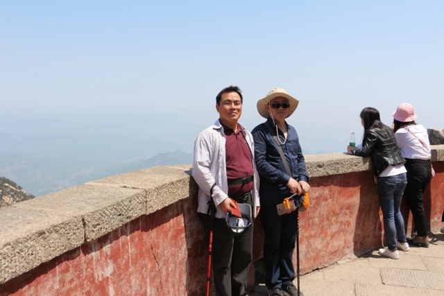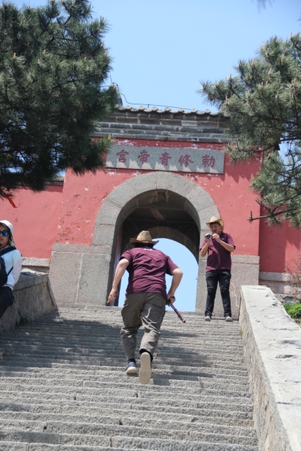 逐级而上,对于正源学校的教师们来说,并不是什么难事。他们一路抚古松,听流泉,过幽涧,望天门,步天街,在“天上”神游南天门、玉皇大帝庙、碧霞元君祠。不多久,便来到了泰山之巅——玉皇顶。玉皇顶海拔1545米,在玉皇顶上,极目望去,无不“登泰山而小天下”、“会当凌绝顶,一览众山小”之慨。