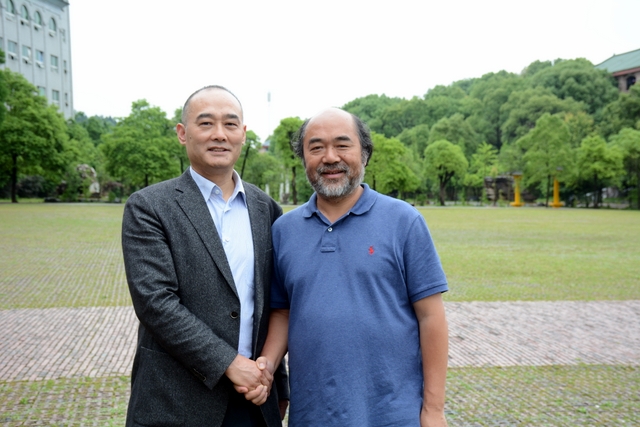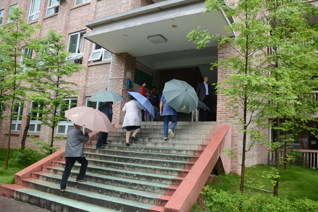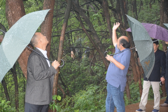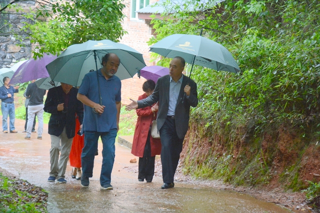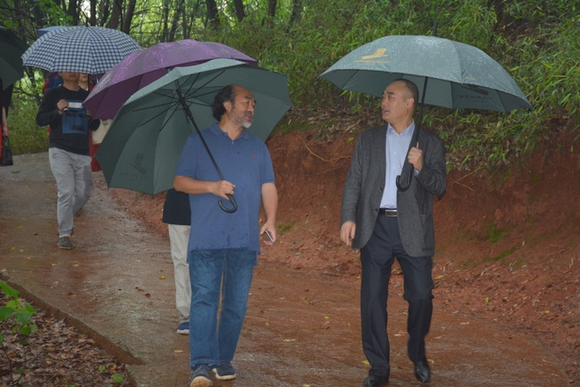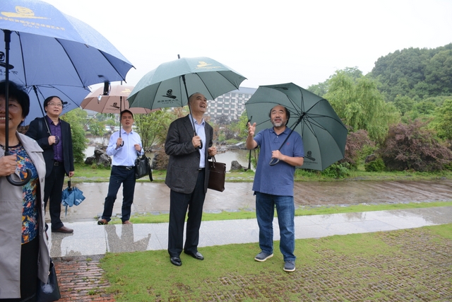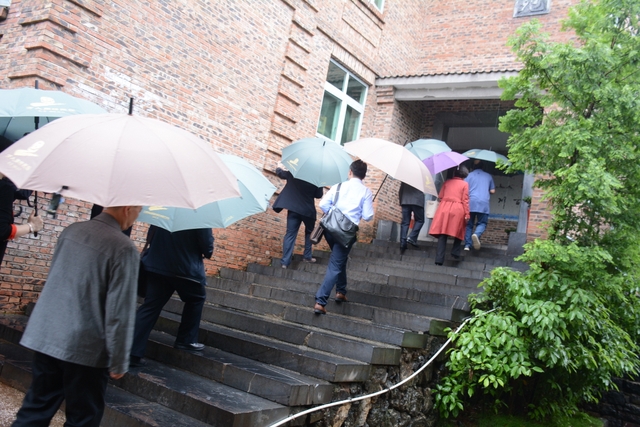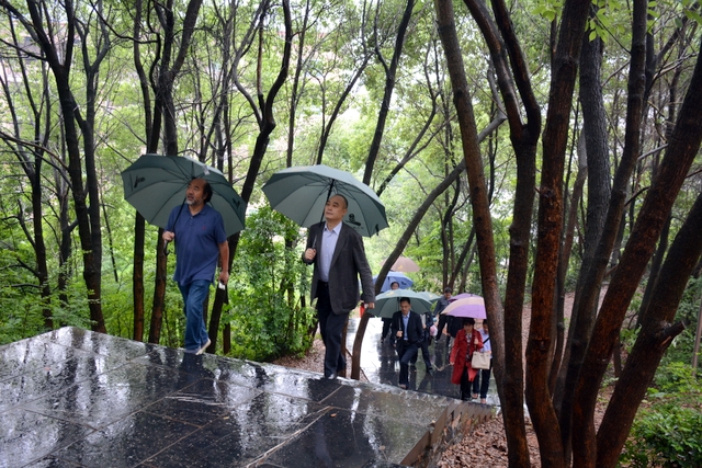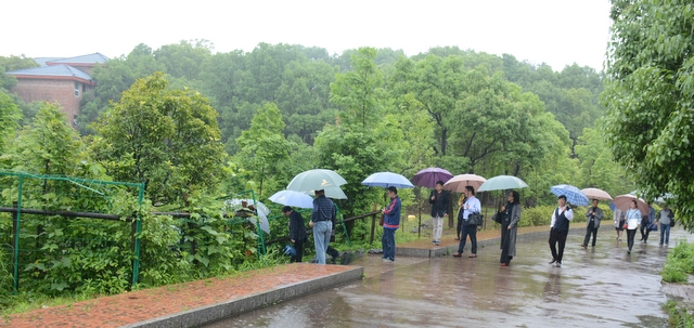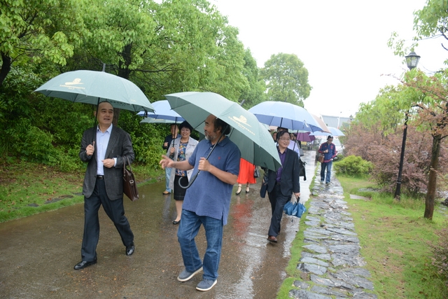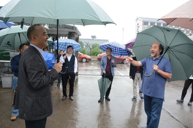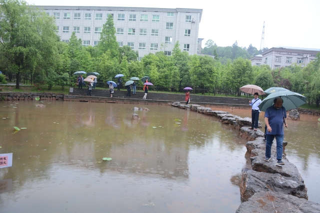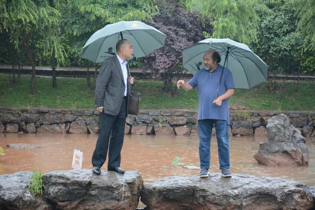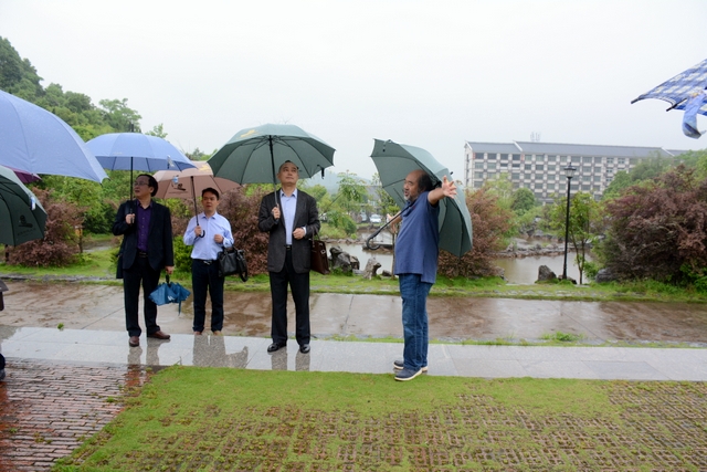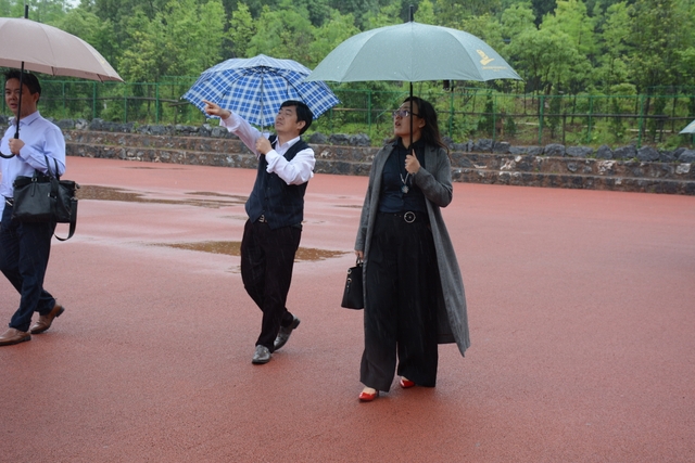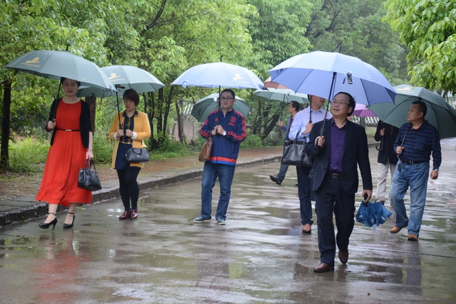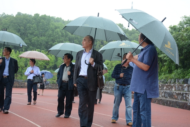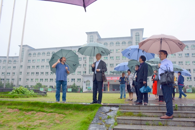 2013年1月,中国民办教育协会组团赴美考察,罗校长和刘董事长同时应邀参加,结下兄弟般情谊。今天,刘董事长率团来访,老朋友重逢,分外亲切。天雨淋淋,丝毫不阻宾主们的浓浓兴致。罗校长今天特别精神,带领客人们参观校园,边走边介绍正源的“风水”:群山环抱,南纳耒水,校正门两侧青山绿树,左青龙,右白虎,中间“明堂”(水池)上接天光,下接地气。后面的广场容纳一万五千多师生集会绰绰有余,主体教学楼像雄鹰展翅,又似巨人环抱的臂膀。去年12月,台湾孔子学院院长孔维勤教授来耒阳参加中国罗含文化研讨会,参观正源后,盛赞正源格局大,气魄非凡。刘董事长连连点头,直夸罗校长是“风水大师”。
