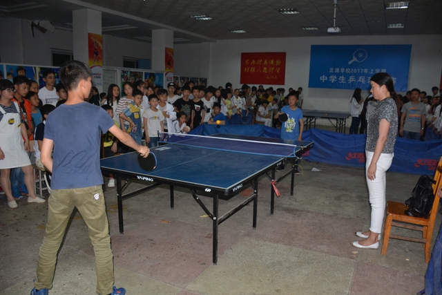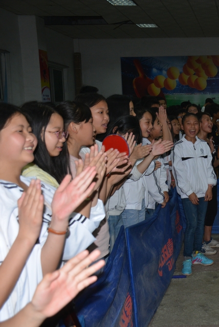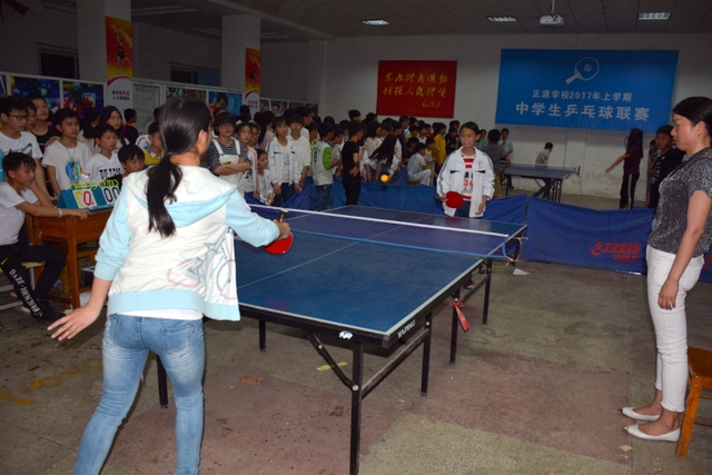 5月10日晚上7:55正源学校中学生乒乓球女子单打半决赛正在乒乓球馆如火如荼地进行着。本场比赛由C305班的刘亚妮对决C306班的徐佳。双方选手都使出浑身解数,还真是势均力敌!观赛人群将比赛场地围得水泄不通,目不转睛地注视着场内乒乓球一次又一次的飞跃。