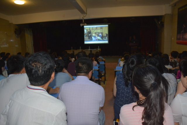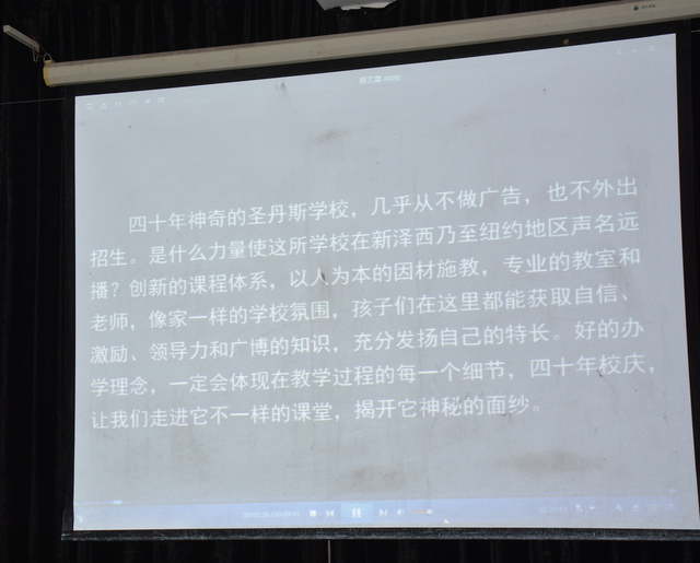 会上播放了罗校长一行到圣丹斯学校视导工作的视频,展示了圣丹斯学校日常教学的场面,包括厨艺课、绘画课、话剧课、生物课等,让老师们耳目一新,有一种醍醐灌顶、茅塞顿开之感。