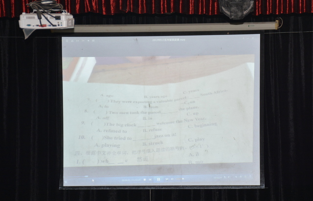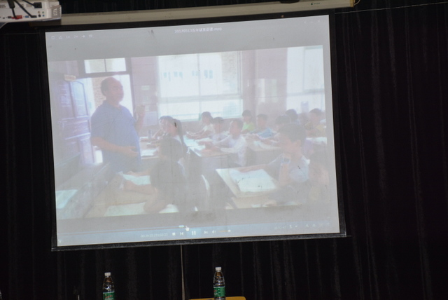 接下来,播放了罗校长下午听课的视频。同学们对《新概念英语2》课文朗读的流利程度,对校长提问对答如流的程度,争先恐后踊跃发言的场面,上课与老师配合的流畅与默契,等等,让每一个老师不得不折服。