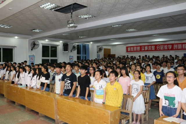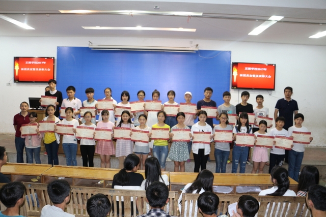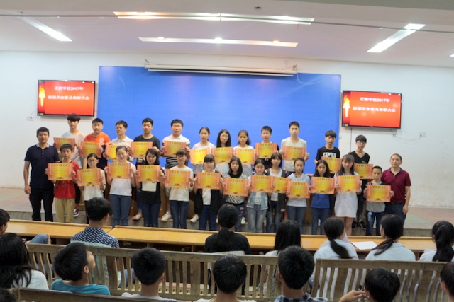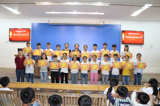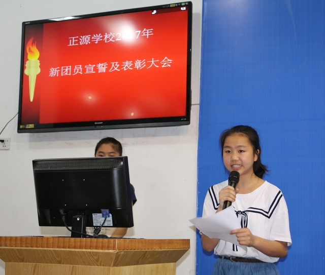 大会在校团委书记周文根带唱团歌《光荣啊,中国共产主义青年团》中拉开序幕。随后,来自准高一1609班的雷婉娟代表老团员作了发言。雷婉娟同学联系自身实际,畅谈了加入团组织后自己在学习,尤其在与同学交往、沟通以及能力提高方面的深切感受;来自初二年级259班的陈施余同学则代表新团员表达了自己对团的认识以及入团后的决心。