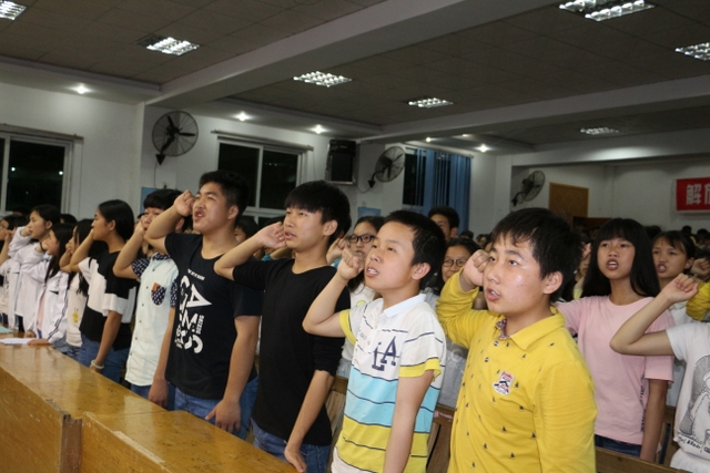 接着,新团员宣誓和老团员重温誓词把大会推向了高潮。500多名新老团员面对团旗,高举右手,庄严宣誓。铮铮誓言,响彻校园。