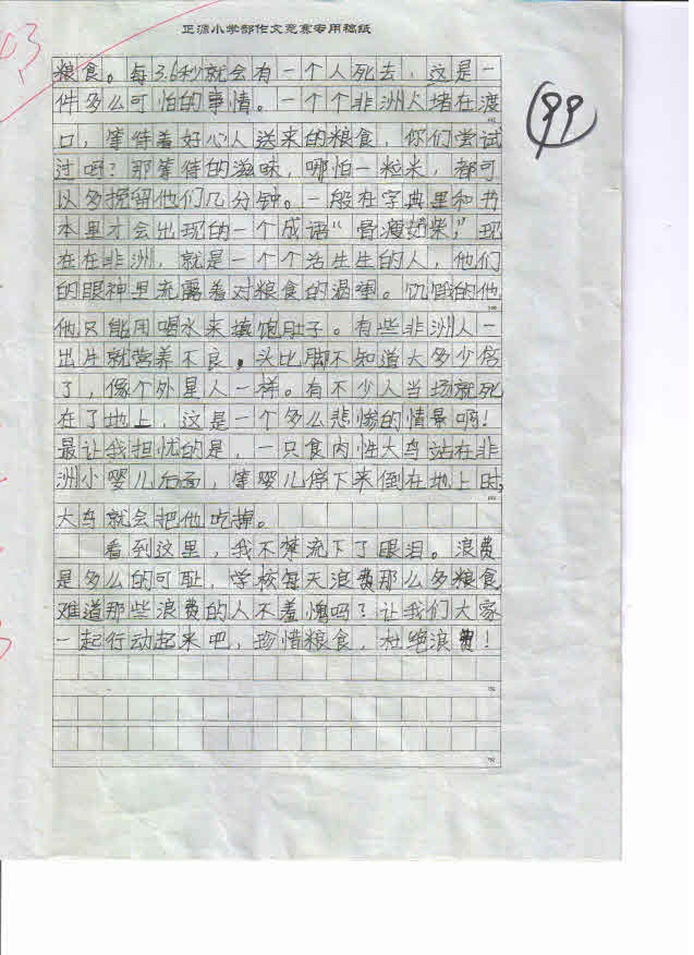 拒绝浪费 从自身做起——小学部五年级开展“珍惜粮食”视频观后感作文竞赛