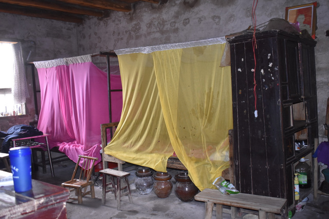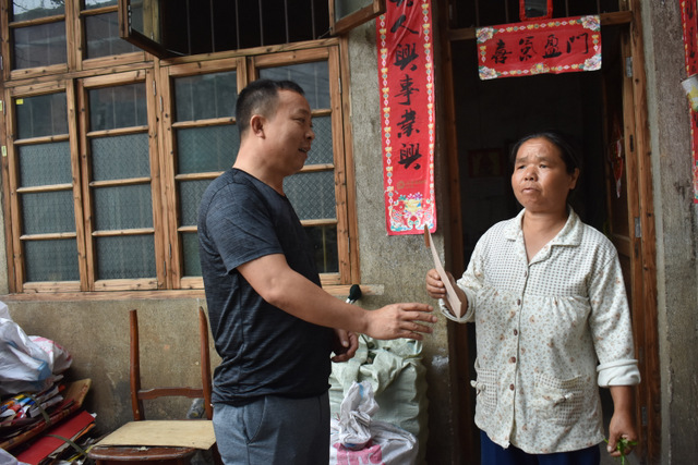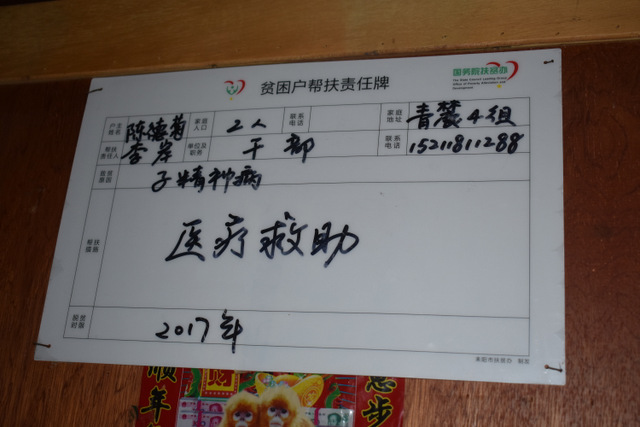 下午走访的第二家是陈德菊家。陈德菊已经六十多岁,靠卖自留地上的小菜为生。家里有一个三十来岁的儿子,小时候生病发烧烧坏了脑子,以至于成了精神病,失去正常思维和劳动能力。母子俩相依为命,至今还住在陈旧的宗族四合院里,一贫如洗,全靠政府救助。正源学校的帮扶可谓是雪中送炭,老人家感激不尽。