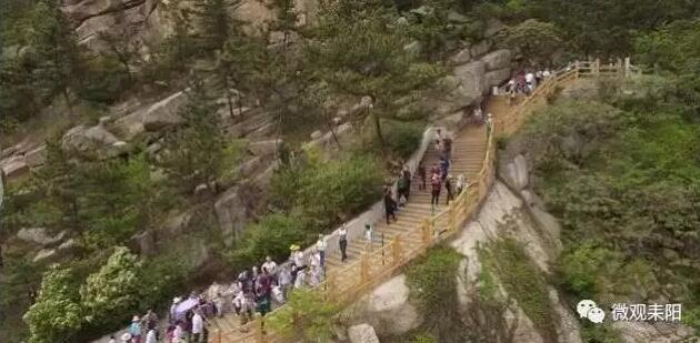 我们一步步稳稳地登上十八盘,到了南天门,前面就是天街。南天门上一幅对联:“门辟九霄,仰步三天胜迹;阶崇万级,俯临千嶂奇观。”回望来路,那雄奇险峻的风景,正和门联的意境相吻合。