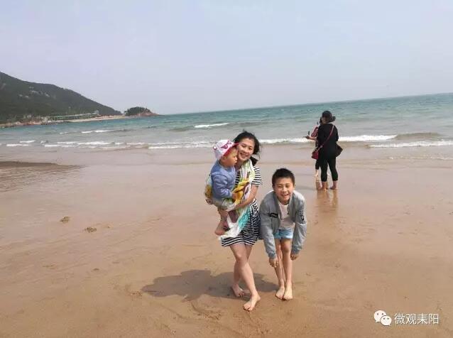 下山后,我们到了一处像月牙弯一样的沙滩,脱下鞋子与海浪进行亲密接触。这沙滩很细软,踩上去很舒服,不扎脚。李丰老师在沙滩上跳起来拍照,像一只轻盈的自由自在的海燕。她说:“见到大海,所有这几天的劳累都消失了无踪无影了。”