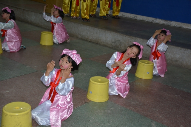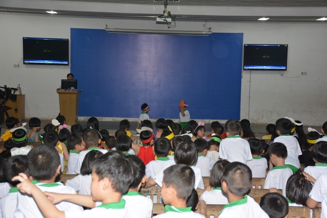 舞台上,各节目在老师们的精心“雕琢”及孩子们的精彩表演下,惟妙惟肖,引人入胜。小演员们以熟练的对白、到位的动作、甜美的歌声、富有创意的表情,征服了台下的师生及家长朋友们,赢得阵阵掌声和笑声。