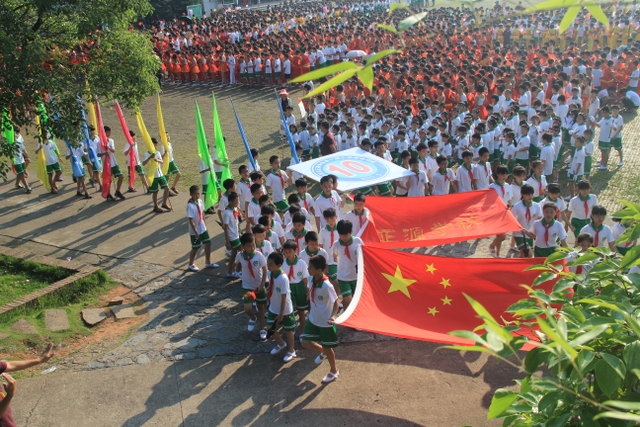 紧接着出场的是校旗方队。正源校旗,是胜利的旗,骄傲的旗;是创造辉煌的旗,续写神话的旗。在这面旗上,写着湖南省高考理科状元刘凡犁,北大、清华正源校友刘凡犁、潘军、刘礼杰、廖文奇、谭智威、刘勇、周孝金等名字,光芒四射,熠熠生辉。