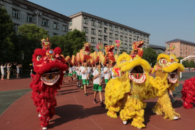 威风凛凛的龙狮方队出场了。龙是中华民族的象征,是炎黄子孙自尊、自强、自信的象征,是中华民族信仰和凝聚力的源泉;狮,是力量、是威武、是霸气的代表。正源学子是龙的传人,是狮的化身,在运动场上一定会如虎添翼,如龙腾飞 !