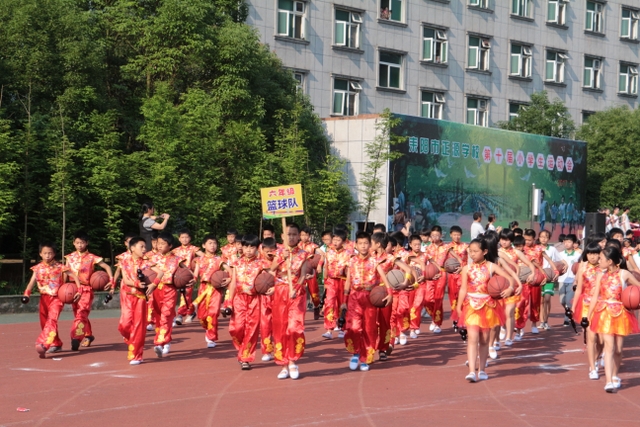篮球方队出场了。整齐的服装,矫健的步伐,响亮的口号,展示了他们积极向上、团结奋发的风采。本学期五年级、六年级举行的篮球赛,他们个个生龙活虎,飒爽英姿。
