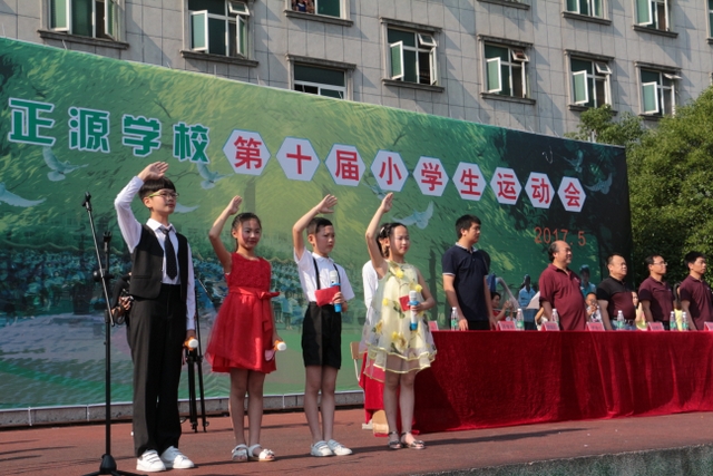 入场完毕,奏唱国歌。罗校长致辞。罗校长说,发展体育运动,增强人民体质,是我校体育活动和体育运动会的宗旨所在。希望同学们在比赛中,发扬更高更快更强的奥林匹克精神,发扬正源人敢打敢拼敢为人先的大无畏精神,赛出风格,赛出水平,重在参与,多破纪录,产生更多的体育之星。