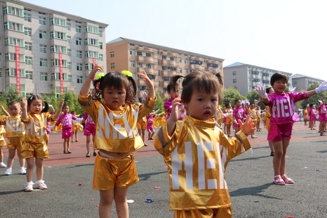舞动是健康的活力,舞动是自信的魅力。欣赏了同学们的精彩表演,老师们也盛装登场。他们一身紫色T恤,在激情、潇洒的动感节奏中,翩翩起舞。124人的小学部教师广场舞也是那么迷人。