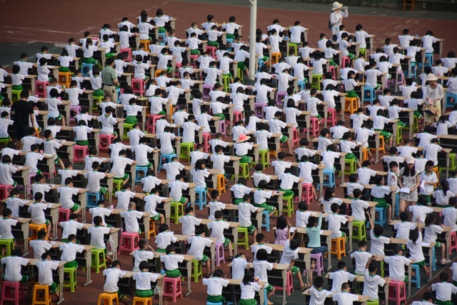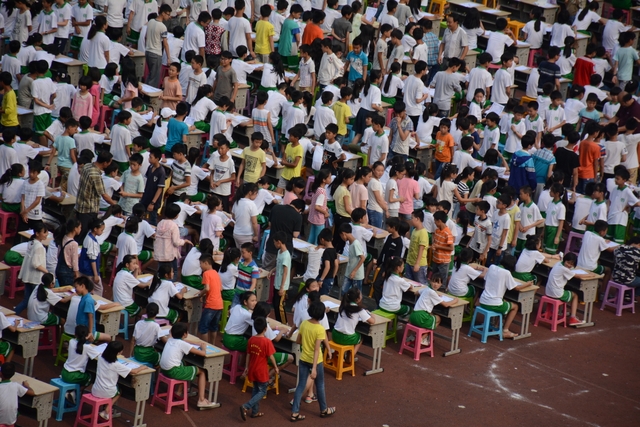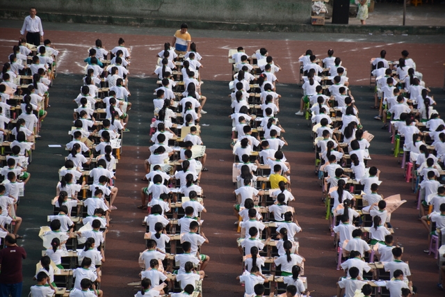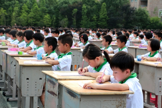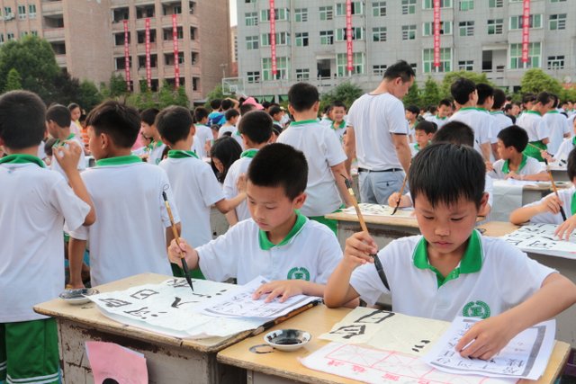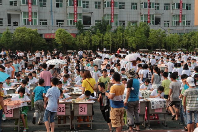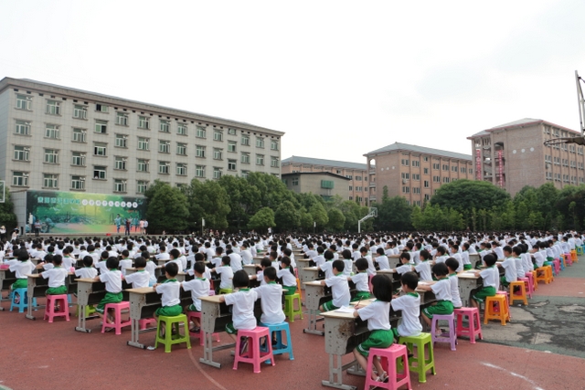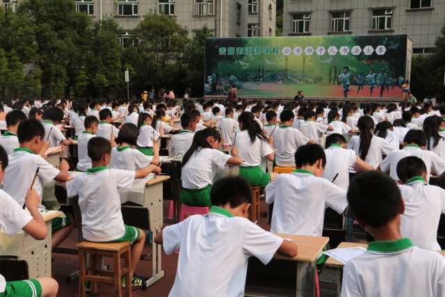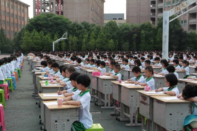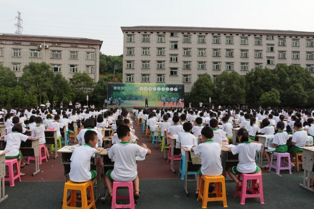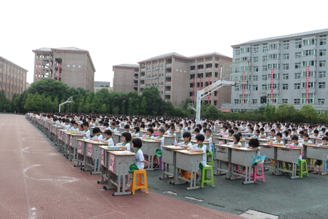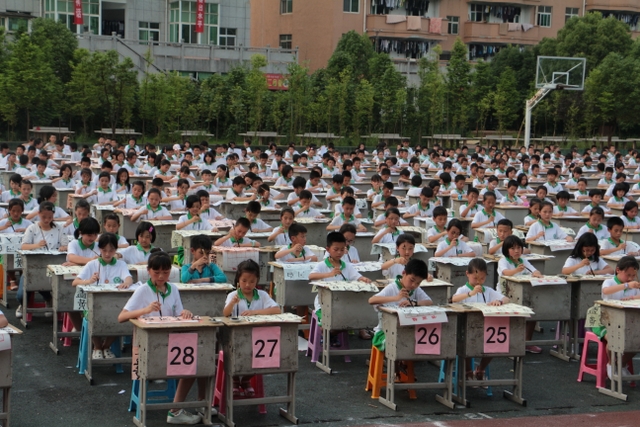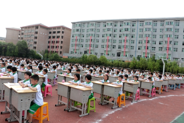 5月31日下午,正源学校小学生1000人书法大赛在小学生运动场胜利举行。横排50张课桌,纵排20张课桌,整整齐齐,场面蔚为壮观。