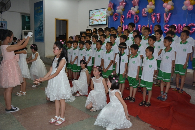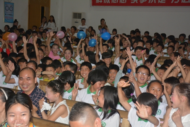 最后,最受孩子们喜爱的罗校长进行了现场发言。先是给孩子们带来了六一节日的祝福,接着对孩子们称赞不已,从上一次罗校长在五年级进行的英语教研以来就对五年级的孩子们刮目相看。五年级的学生学习的是高中新概念2的英语教材,这么难的教材,孩子们学得怎么样呢?在上一次的教研活动中,罗校长随便到一个班级听课,课后随便抽一些学生读书,孩子们都能大声流利地朗读所学课文,甚至有些孩子还能够背诵出来。英语教学取得这样的成果,真是独树一帜,非同一般。校长笑谈,他在美国办学过程中,什么都能跟上美国的节奏,只有他的英语跟不上,他希望孩子们不管成绩如何都要努力学习英语,把英语学好,未来他将带着孩子们走向全世界。孩子们听到校长的发言,个个都心情澎湃,都不由自主地站起来欢呼!