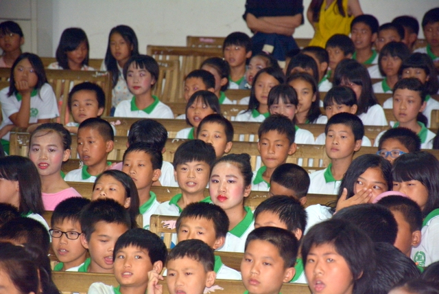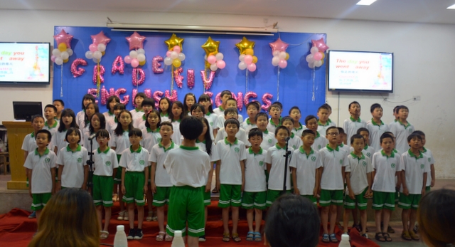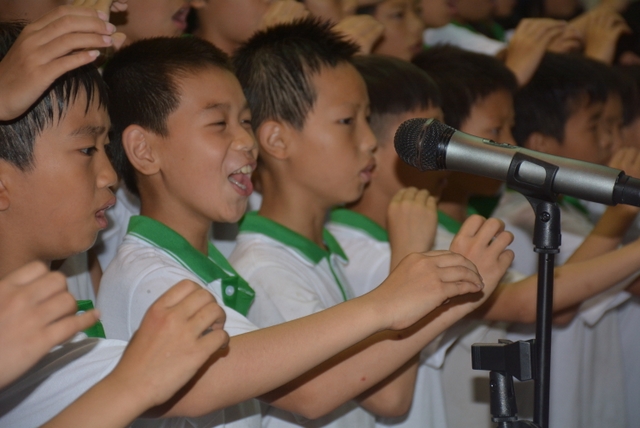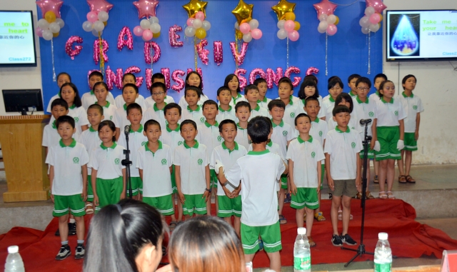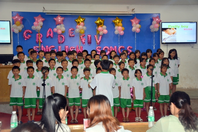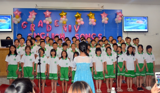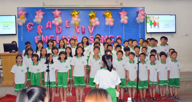 6月1日晚6:50,在正源报告厅迎来了五年级英语合唱比赛的第二场,本场比赛更是精彩纷呈,每个班级都准备充足,穿上整齐的校服,自信满满地走上舞台,放声歌唱。本场比赛的班级演唱形式都多种多样。270班演唱的《A little love》,穿插了相应的舞蹈,8位女孩头戴粉红色的花环,用她们优美的舞姿配合着歌曲的内容,孩子们深情演绎,借用这首歌曲抒发了他们对正源教师的爱。155班演唱《Pretty Boy》时,演唱中出其不意地手举彩色气球,呈现出一个美轮美奂的场景,更是将这首歌推向了高潮。接着151班演唱的《The day you went away》,声音响亮,节奏欢快,歌者投入,听者入迷。歌曲结束后,掌声阵阵,评委老师更是打出了现场最高分——96分。紧接着,艾莎公主的出现吸引了全场观众的眼球,原来是159班即将演唱孩子们特别喜爱的英文歌曲《Let it go》。唱到高潮旋律时,现场的观众都跟着他们集体合唱Let it go…let it go…场面甚是壮观。最后272班演唱的英文版吻别《Take me to your heart》,孩子们深情款款地演唱着,让我们感叹本学期来的新班也能把一首这么难的英文歌唱得这么好。我们正源学校的孩子们真棒!