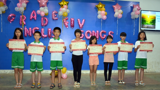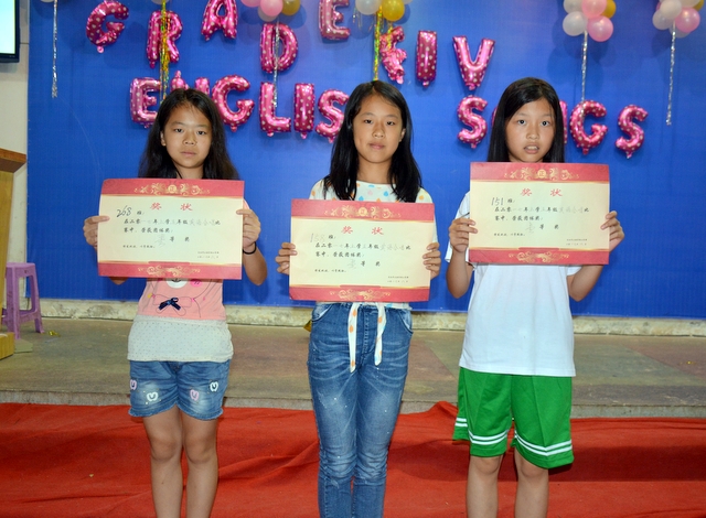 最终,我们的英语比赛在充满希望和梦想的氛围里拉下帷幕。罗校长,陈校长以及刘静主任为我们颁奖,本次英语合唱比赛取得圆满成功。