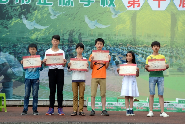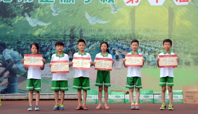 在罗主任讲话之后,就是学部理科教研主任周运根宣布各年级运动员获奖名单,文科教研主任贺江云主任宣布各年级团体获奖名单。在宣读完获奖名单后即举行了简单的颁奖仪式,以年级为单位派代表领取各年级奖状奖品,并一起合影留念。