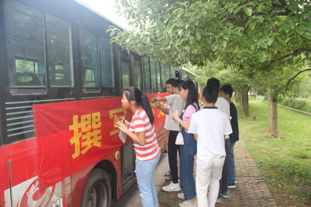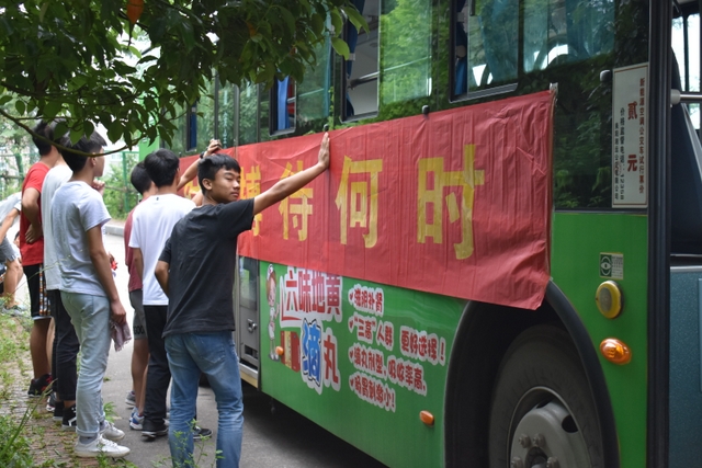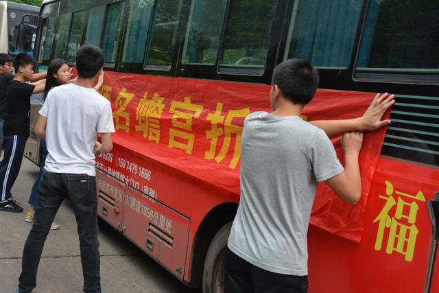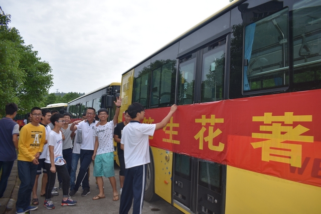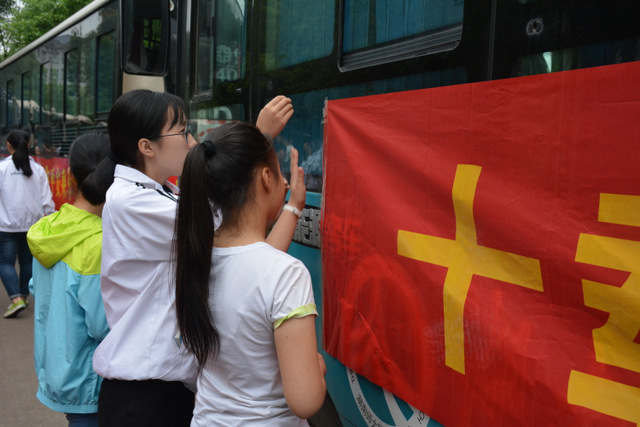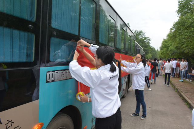6月7日一早,高二年级的学弟学妹们就起床,为学哥学姐们的高考车张贴标语,把诚挚的祝福、衷心的期盼送给大家。